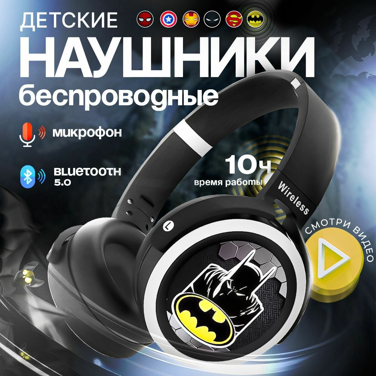 Купить Наушники детские беспроводные Бэтмен KA-906, с Bluetooth 5.0, с микрофоном, чёрные