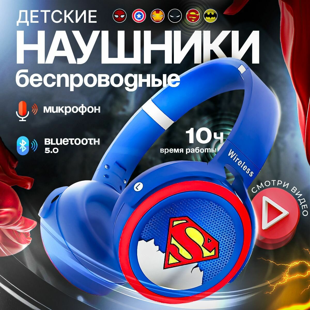 Купить Наушники детские беспроводные Супермен KA-906, с Bluetooth 5.0, с микрофоном, синие