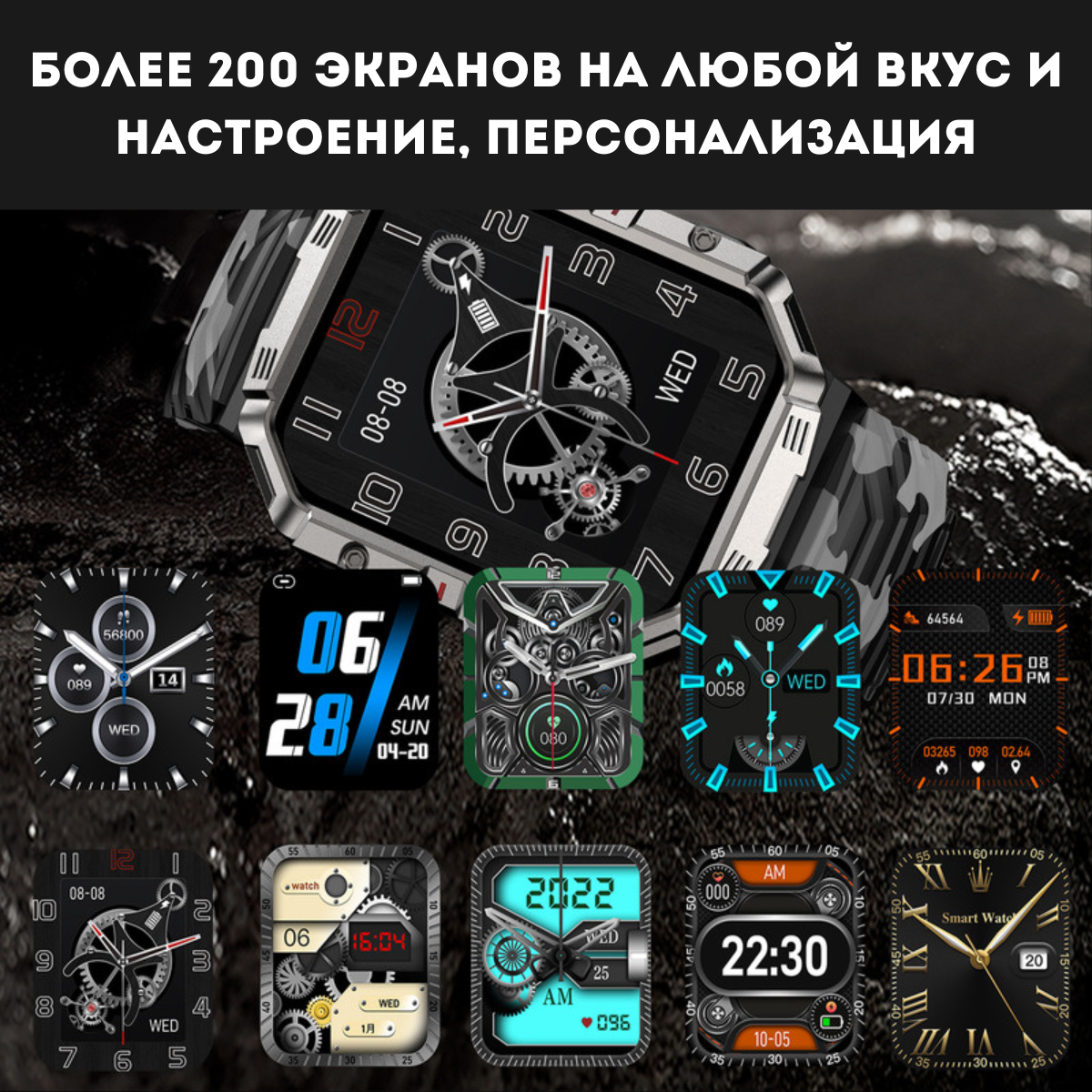Смарт часы / умные часы PATRIOT GW55 зелено-черный камуфляж интересное: