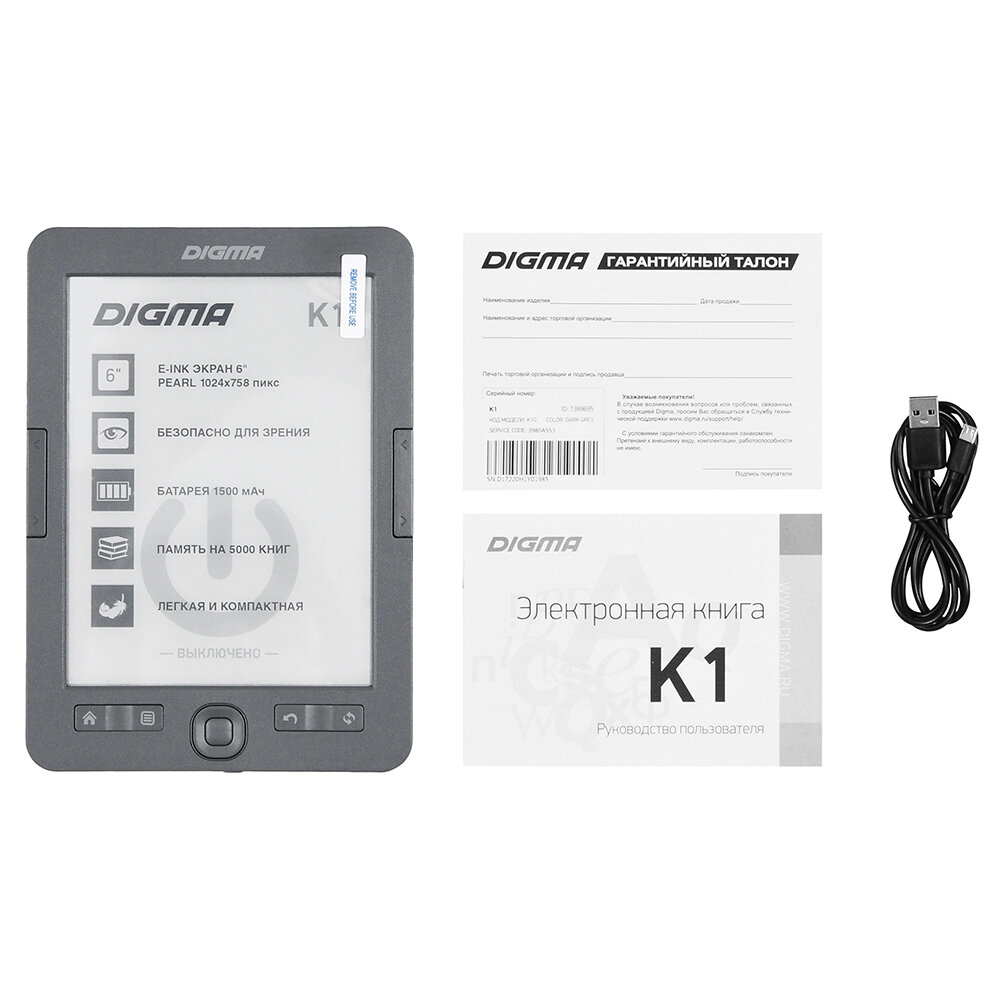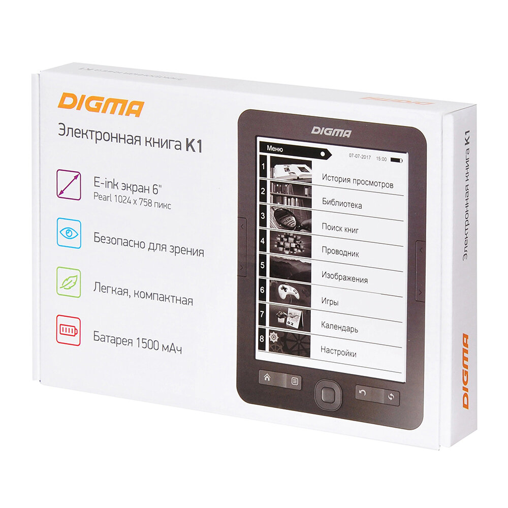 Ниже Вы можете прочитать отзывы на Электронная книга Digma K1 6" темно-серый 128Mb/4Gb, ознакомится с подробными характеристиками, посмотреть интересные обзоры и фотографии на Электронная книга Digma K1 6" темно-серый 128Mb/4Gb.