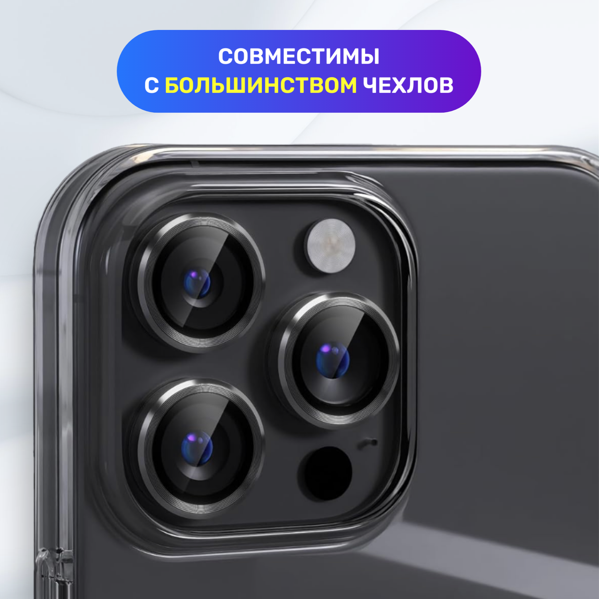Купить Линзы (стекла) для защиты камеры iPhone 14/15/16 Pro/Pro Max Черные