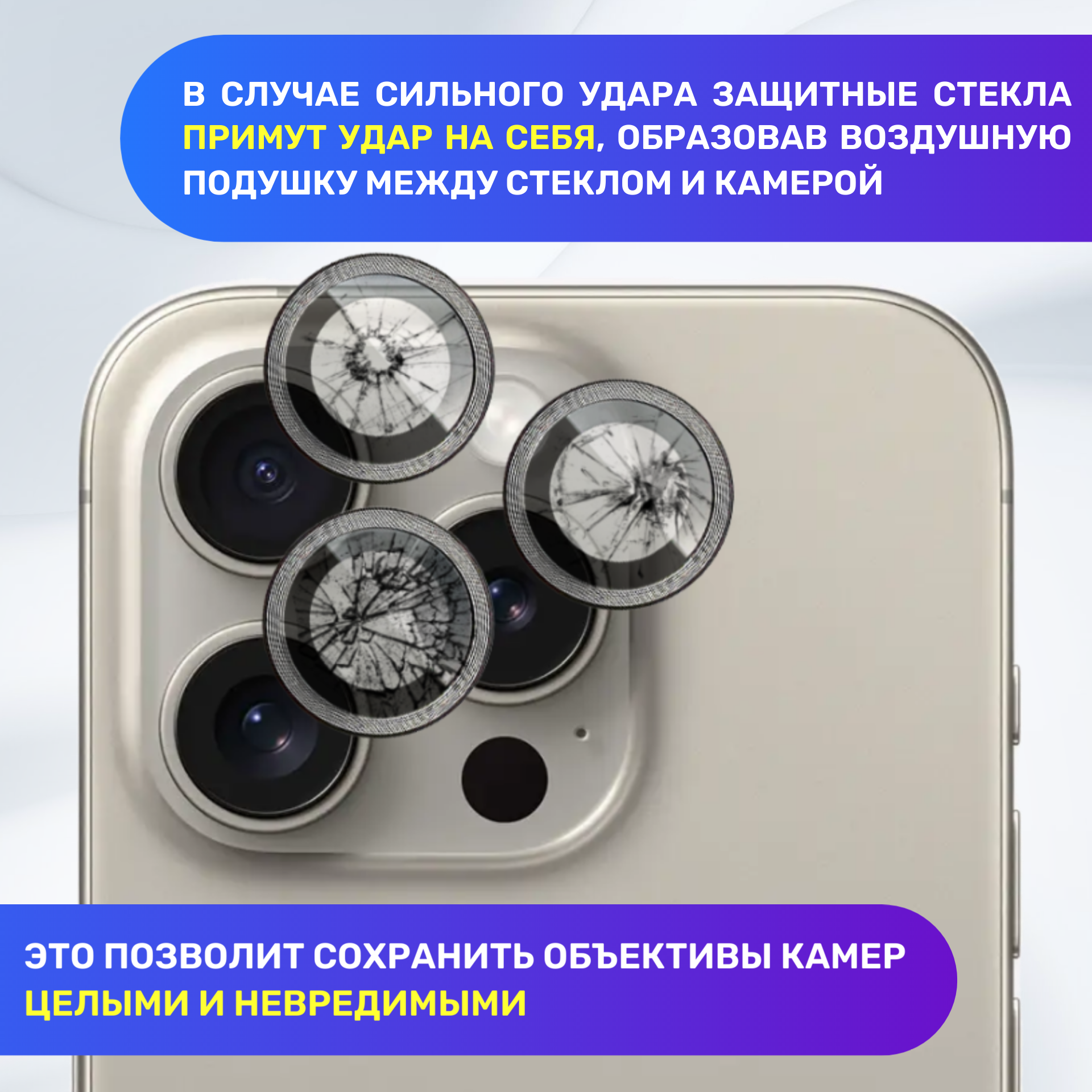 Купить Линзы (стекла) для защиты камеры iPhone 14/15/16 Pro/Pro Max Титан