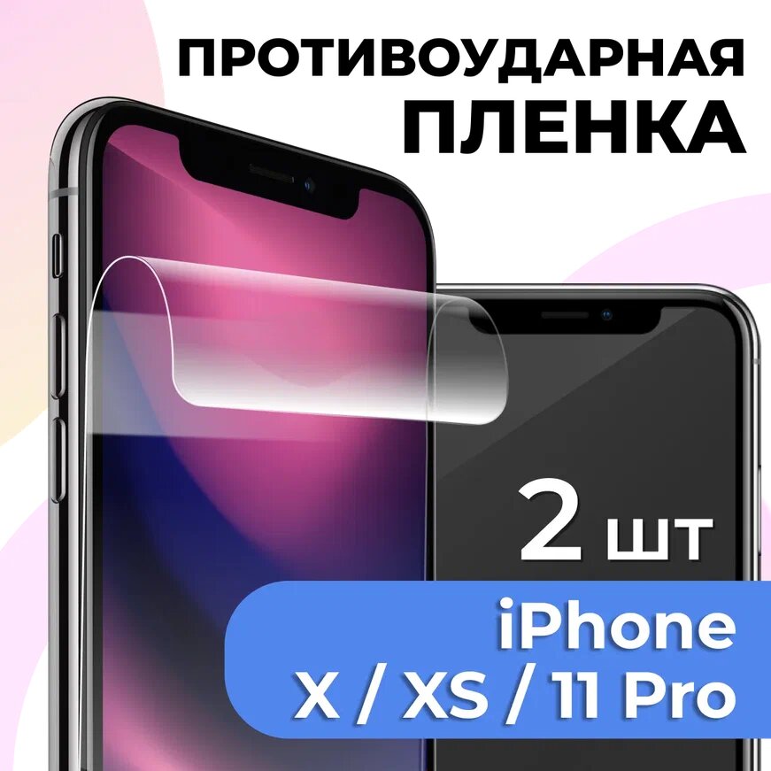 Комплект 2 шт. Самовосстанавливающаяся гидрогелевая пленка для телефона Apple iPhone X, XS и 11 Pro / Защитная пленка на смартфон Эпл Айфон Х, ХС и 11 Про