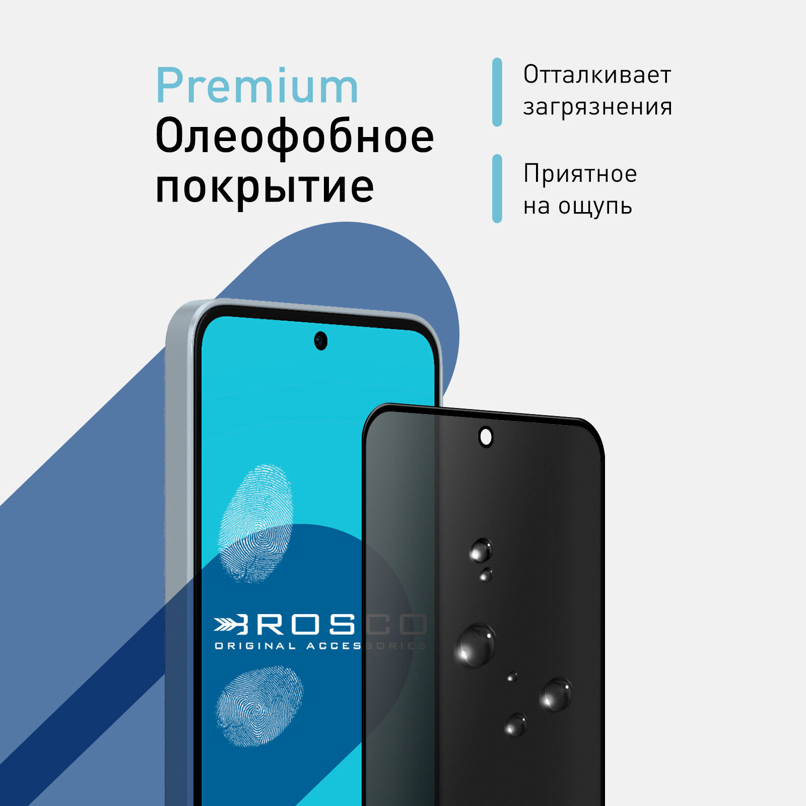 Купить Защитное стекло антишпион на Samsung Galaxy А35 и A55 (Самсунг Галакси А35 и А55), с эффектом приватности, чёрные рамки, бренд Rosco, 1 шт