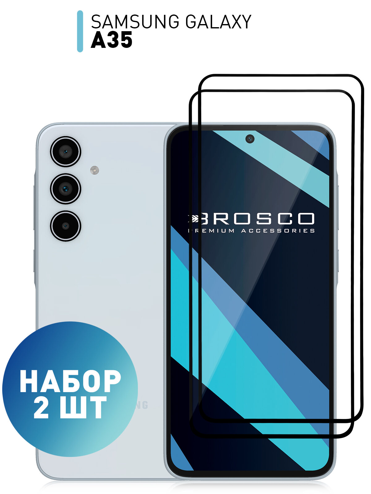 Купить Набор защитных стёкол Rosco на Samsung Galaxy А35 и A55 (Самсунг Галакси А35 и А55), с чёрной рамкой, 2 шт