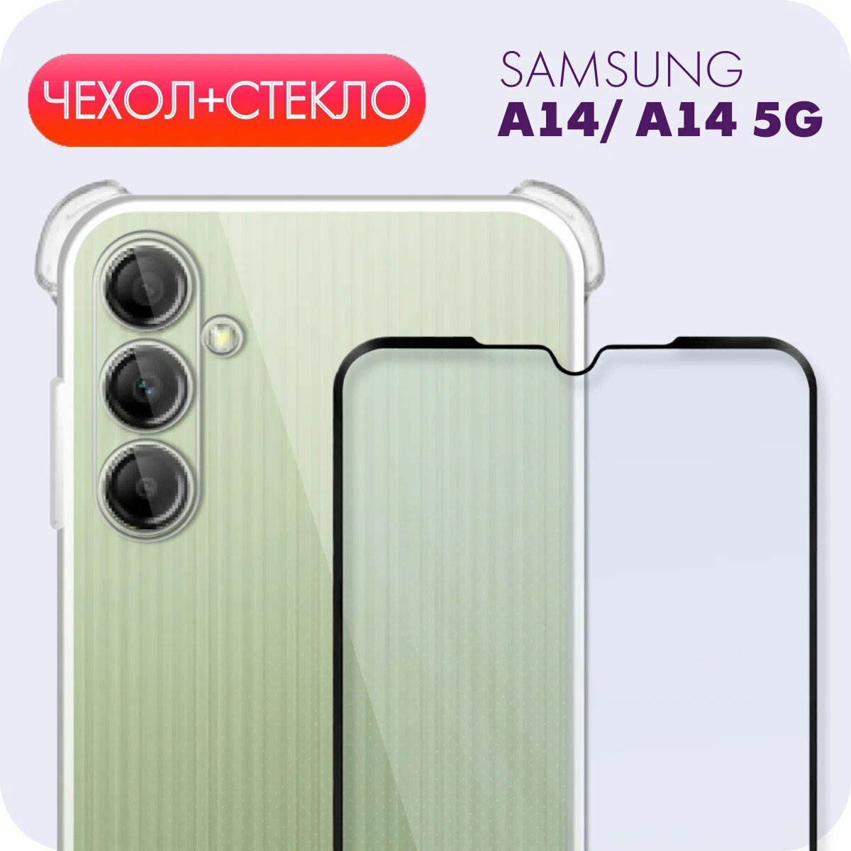 Комплект 2 в 1: Прозрачный чехол с защитой камеры и углов + защитное стекло для Samsung Galaxy A14 / A14 5G / Самсунг Галакси А14 / Гелекси А14 5G