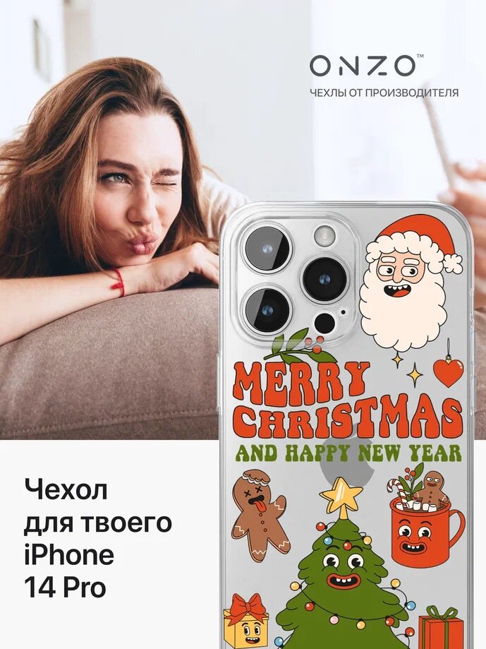 Чехол на iPhone 14 Pro / Айфон 14 Про прозрачный с принтом "Merry Christmas" интересное: