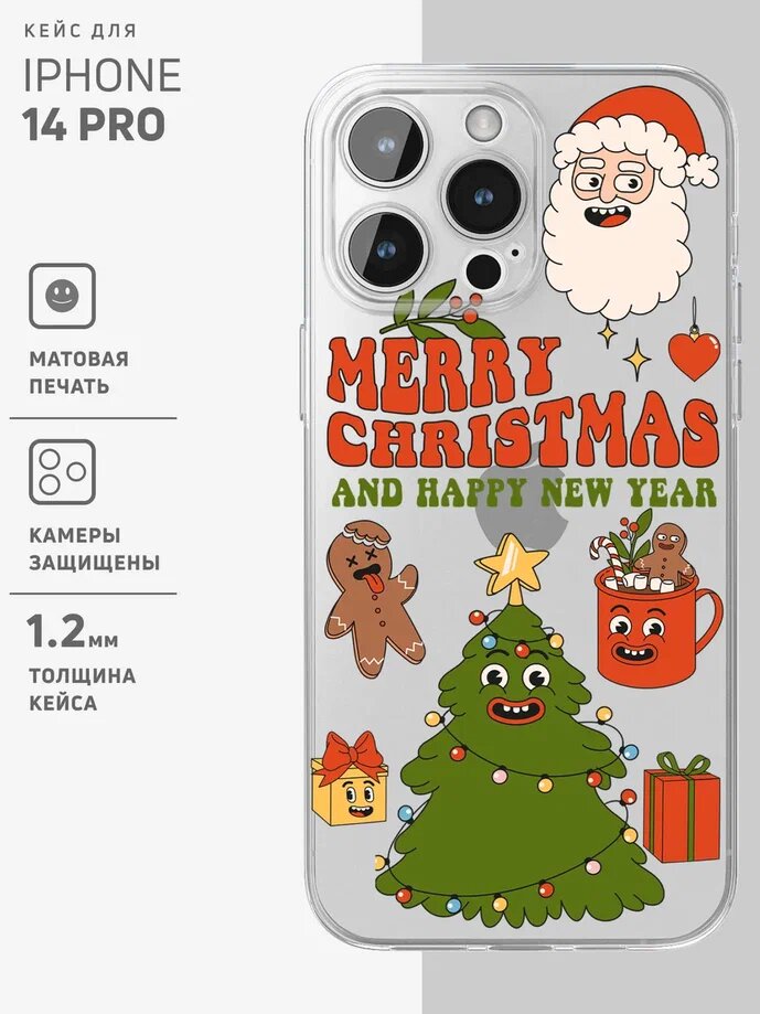 Купить Чехол на iPhone 14 Pro / Айфон 14 Про прозрачный с принтом "Merry Christmas"