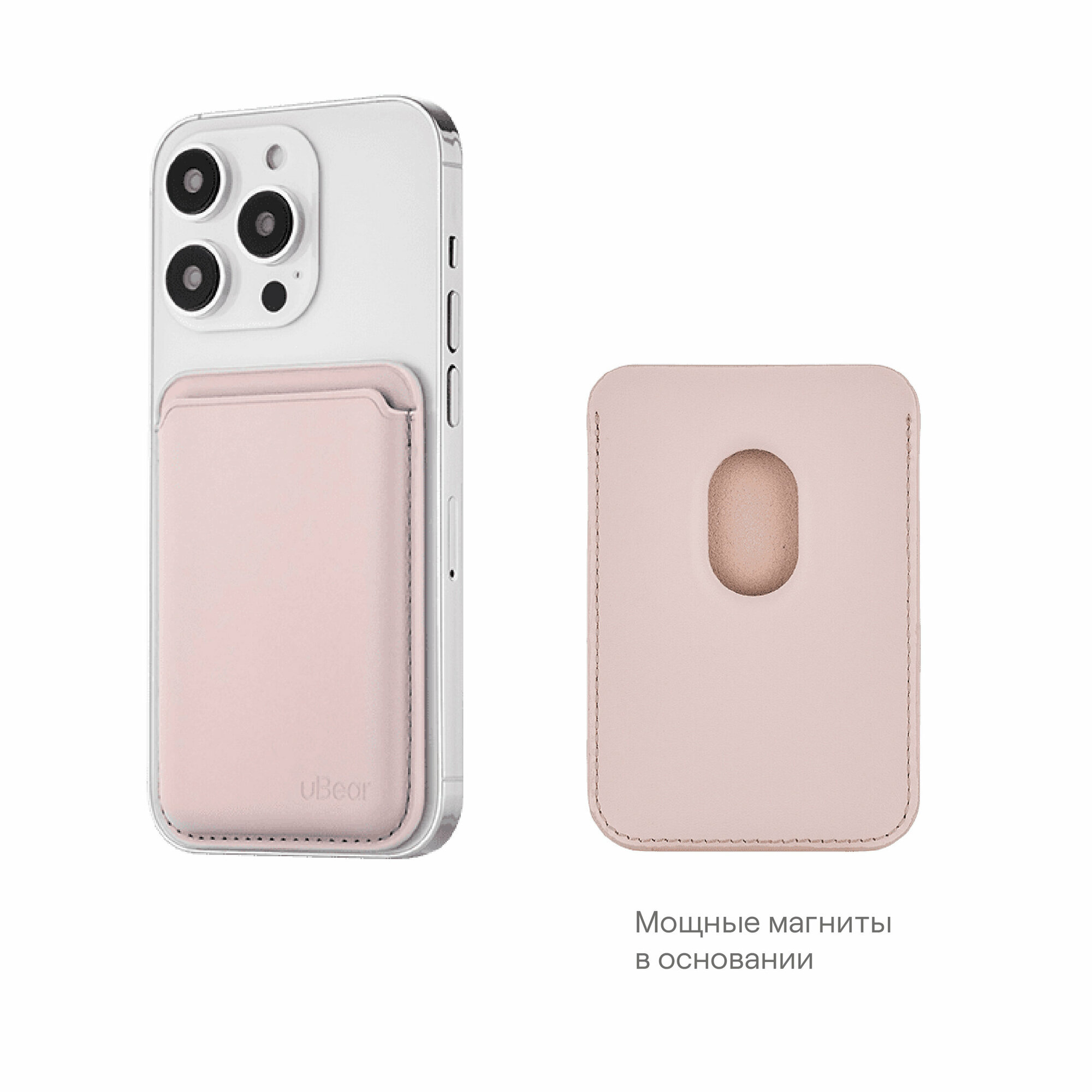 Картхолдер для смартфона MagSafe для iPhone, uBear Shell, чехол магнитный для карт, розовый