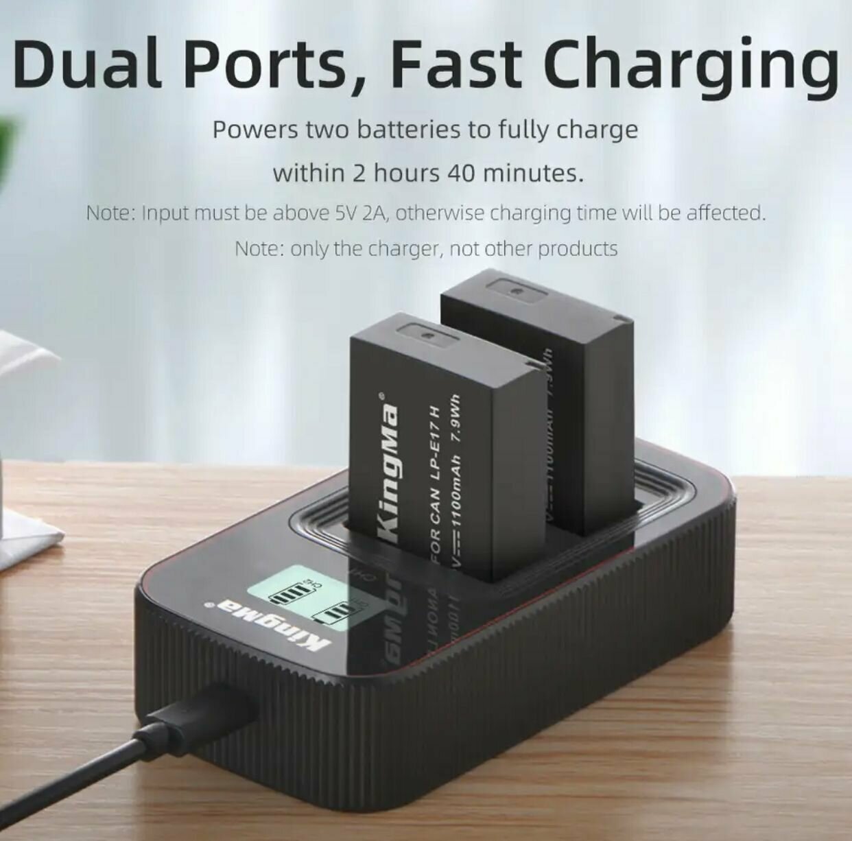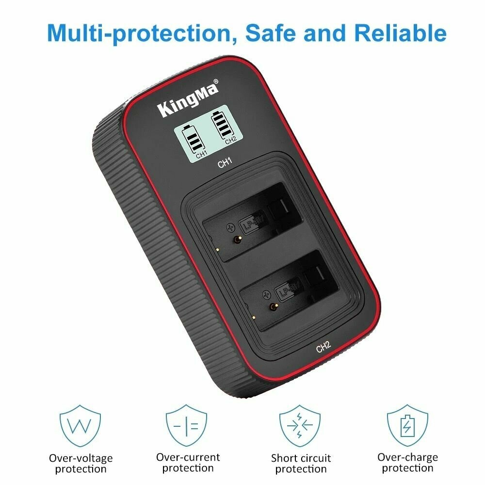 Зарядное устройства c дисплеем и двумя слотами KingMa для аккумуляторов Canon LP-E17.