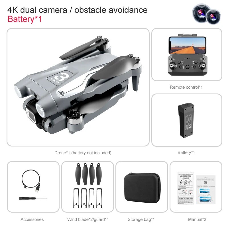 Мини-Квадрокоптер Z908Pro Max с Wi-Fi и камерой Hd 4k, Z908 MAX -Grey-1B интересное: