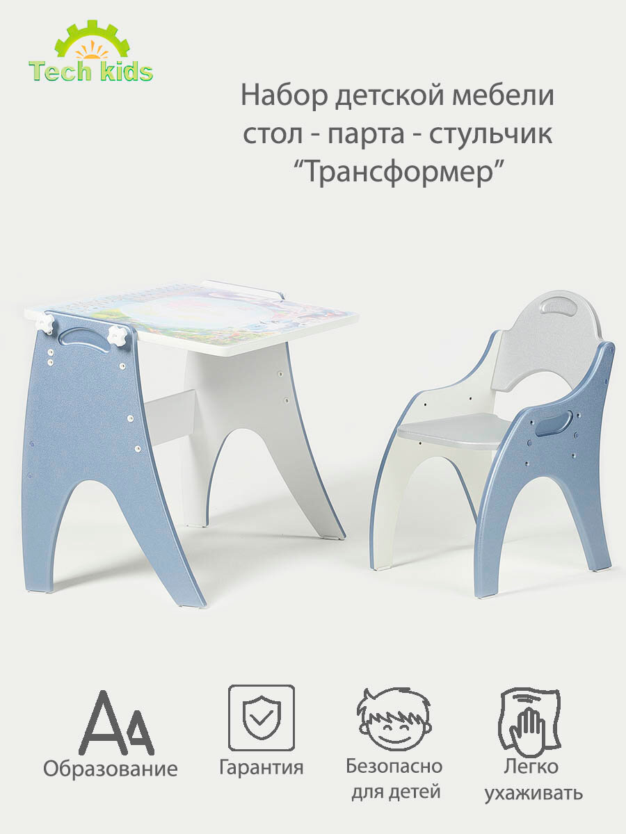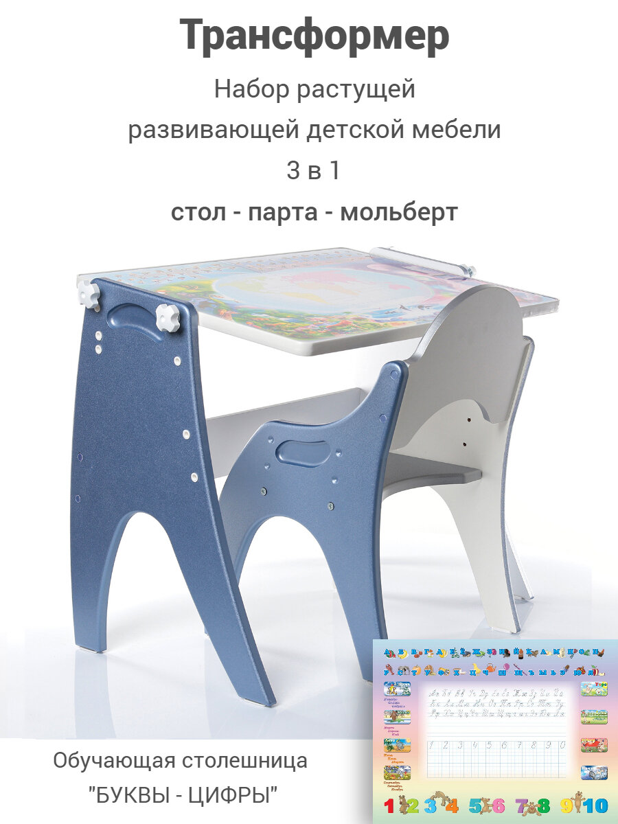Набор мебели детский стол и стул 3 в 1 Тех Кидс Буквы-Цифры Синий интересное: