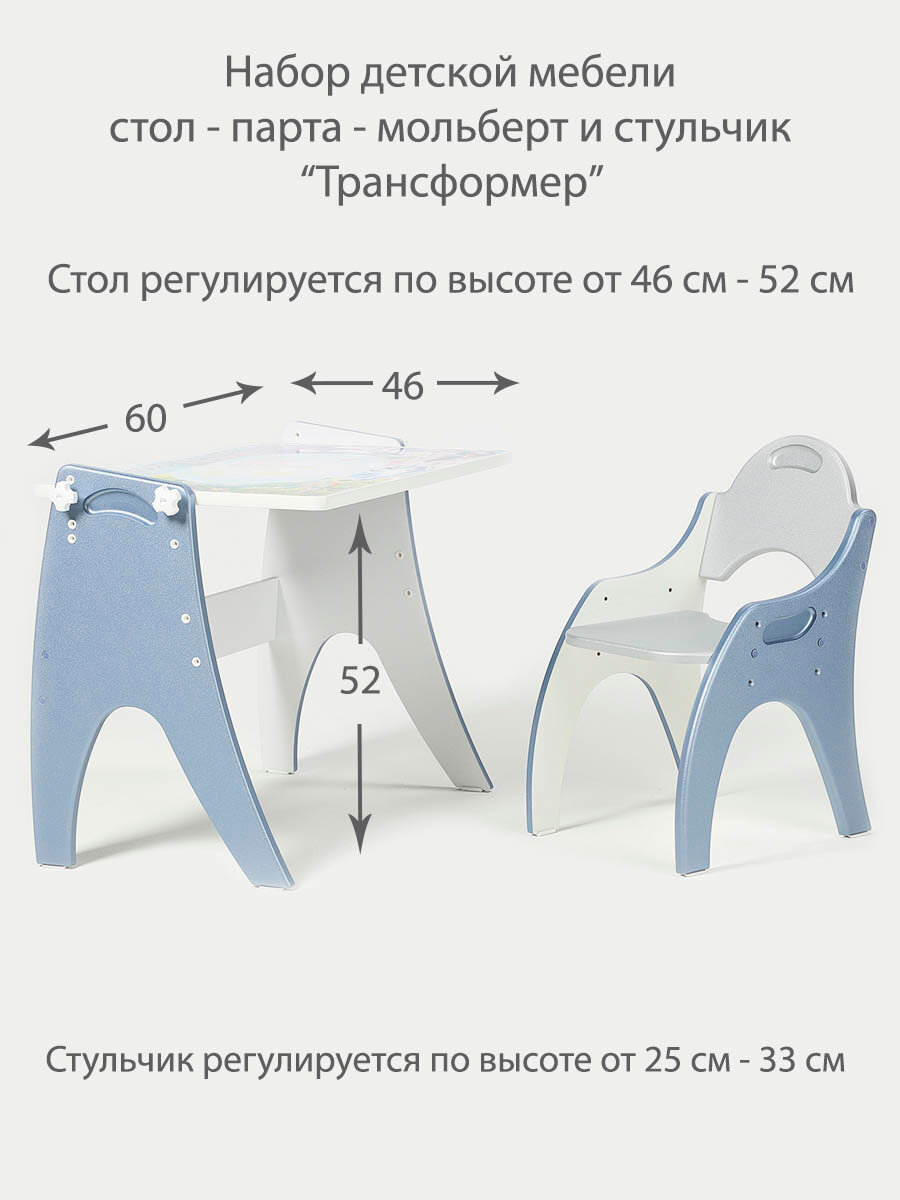 | Дополнительная информация | стол трансформируется в мольберт с грифельной поверхностью |