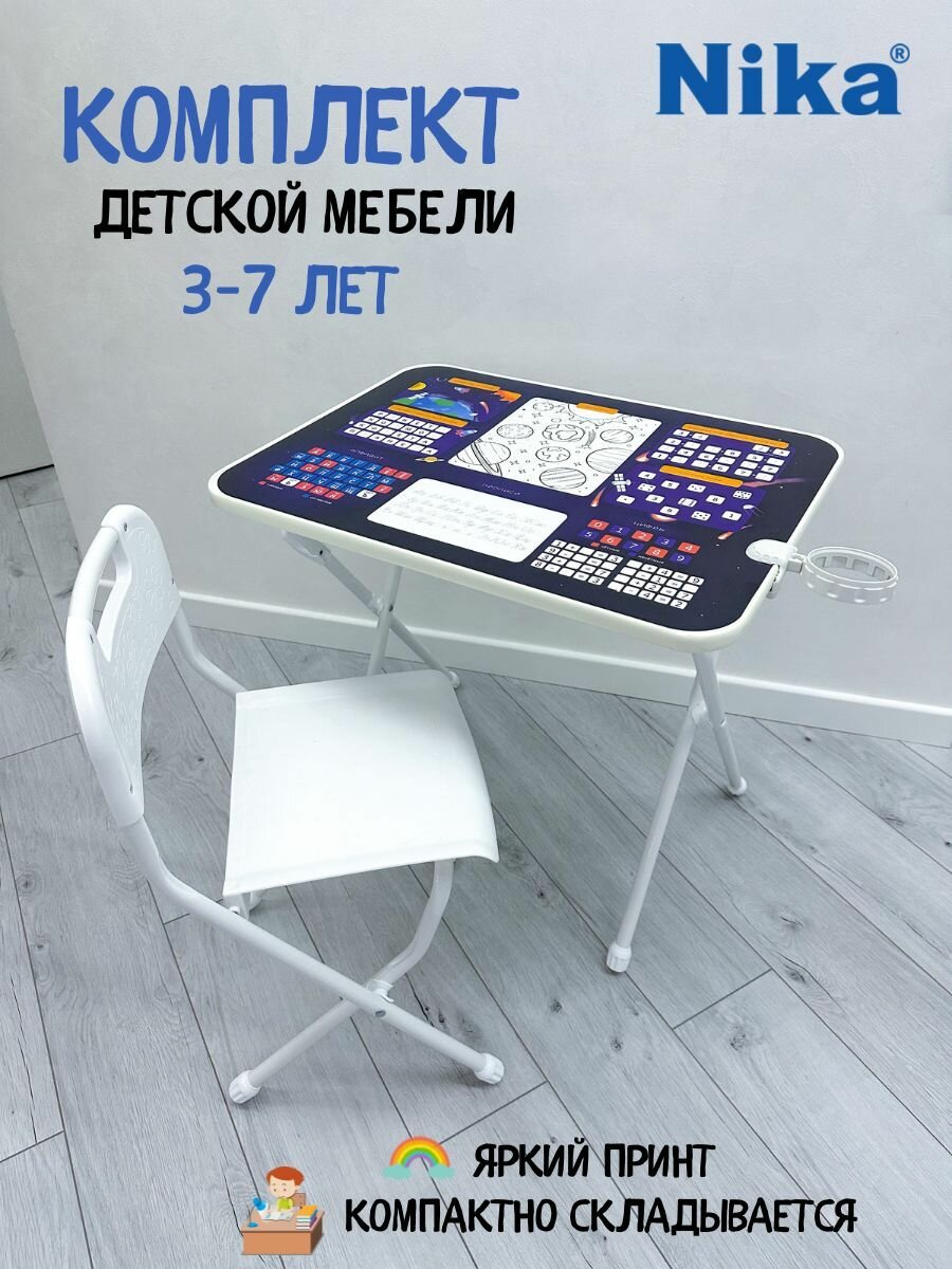 Комплект детской мебели Nika (Ника) стол и стул Солнечная система со съемной накладкой на столешницу