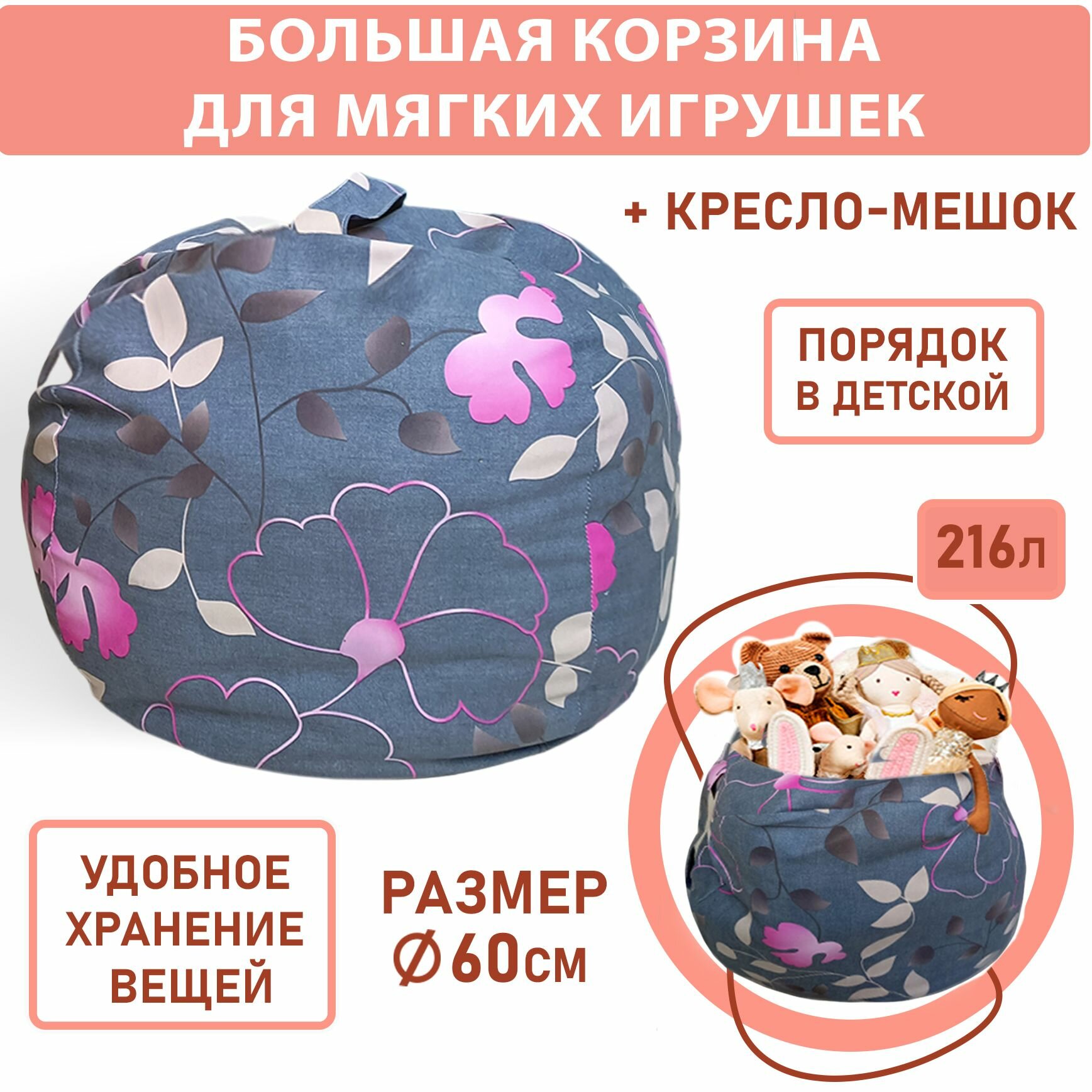 пуф мешок для хранения мягких игрушек