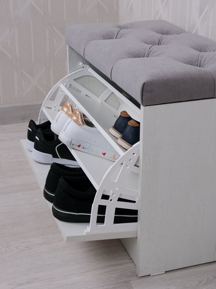 Пуфик в прихожую с обувницей Puffsib А-4, белый/серый