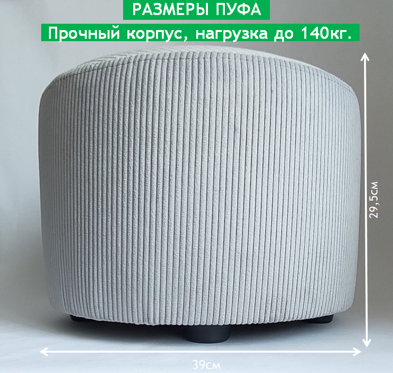 Пуф круглый, велюр светло-серый, размер 39х39х29,5 интересное: