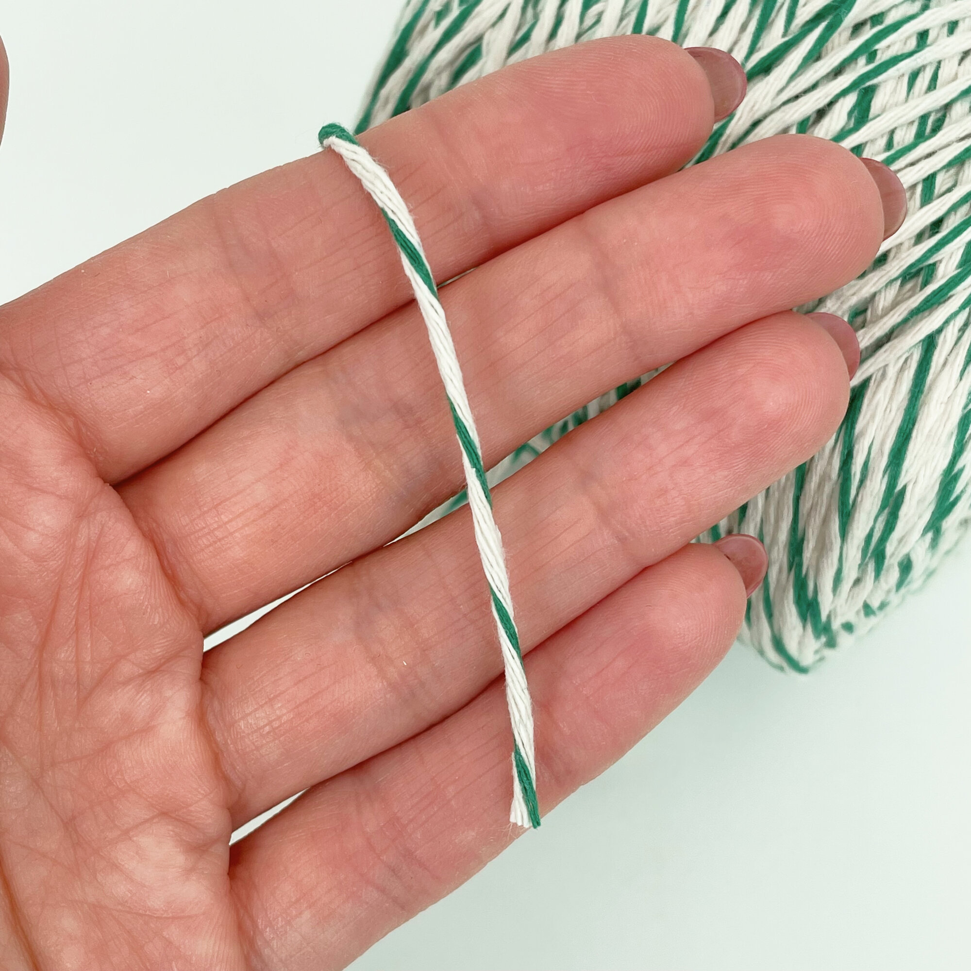 Шпагат хлопковый Dolly Hobby 2 мм, 200 м, для колбасы, для копчения рыбы, для запекания мяса, бело-зелёный