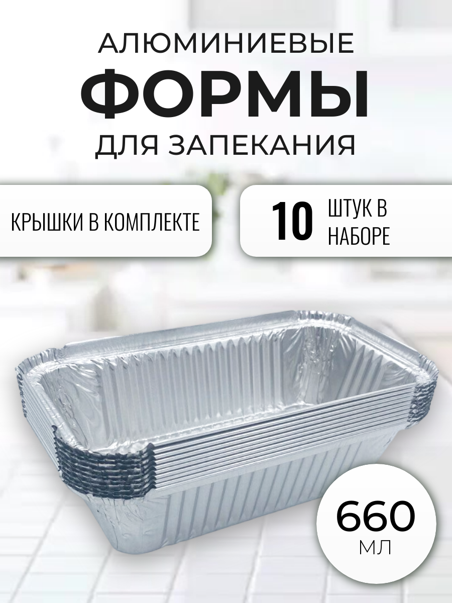 Алюминиевые формы для запекания "Домовушка", 20,1х11х4,9, 660мл без крышки, 10 штук
