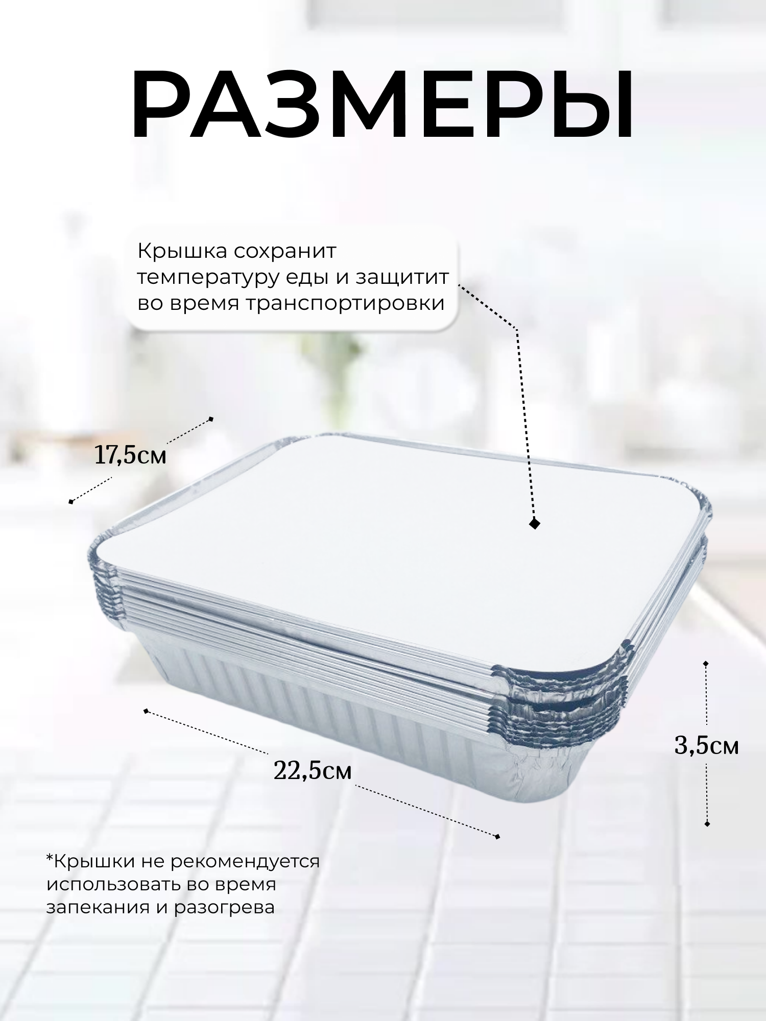 Купить Алюминиевые формы для запекания "Домовушка", 22,5х17,5х3,5, 1125мл с крышкой, 10 штук
