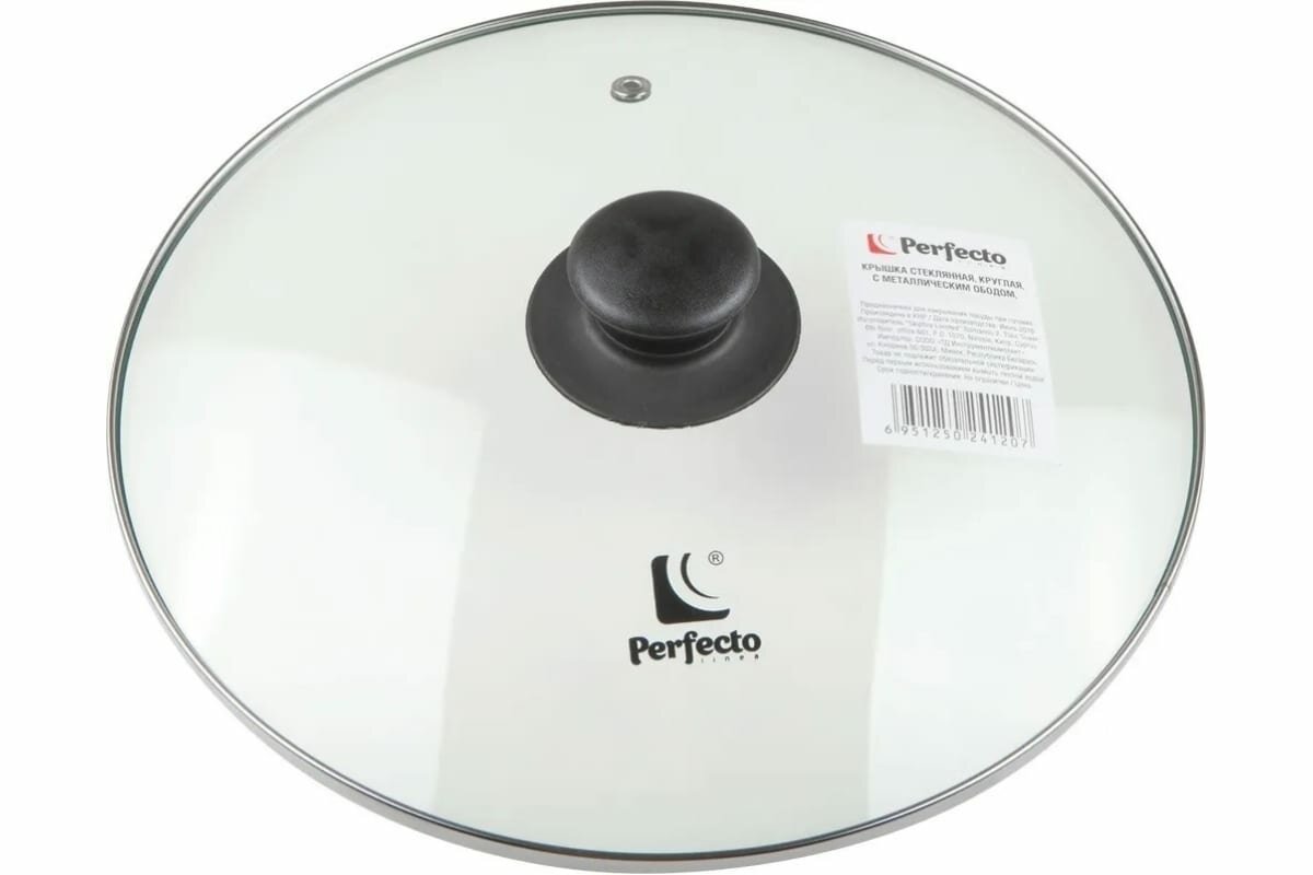 Perfecto Linea Крышка стеклянная, 260 мм, с металлическим ободом, круглая, (Стеклянная крышка на сковороду диаметром 26 см с паровыпуском изготовлена