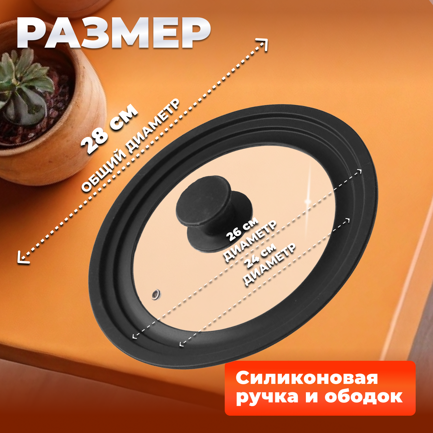 СохранитьКрышка стеклянная, 240-260-280 мм, с силиконовым ободом, круглая, черная, PERFECTO LINEA интересное:
