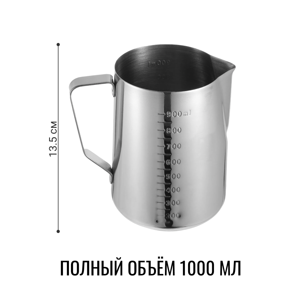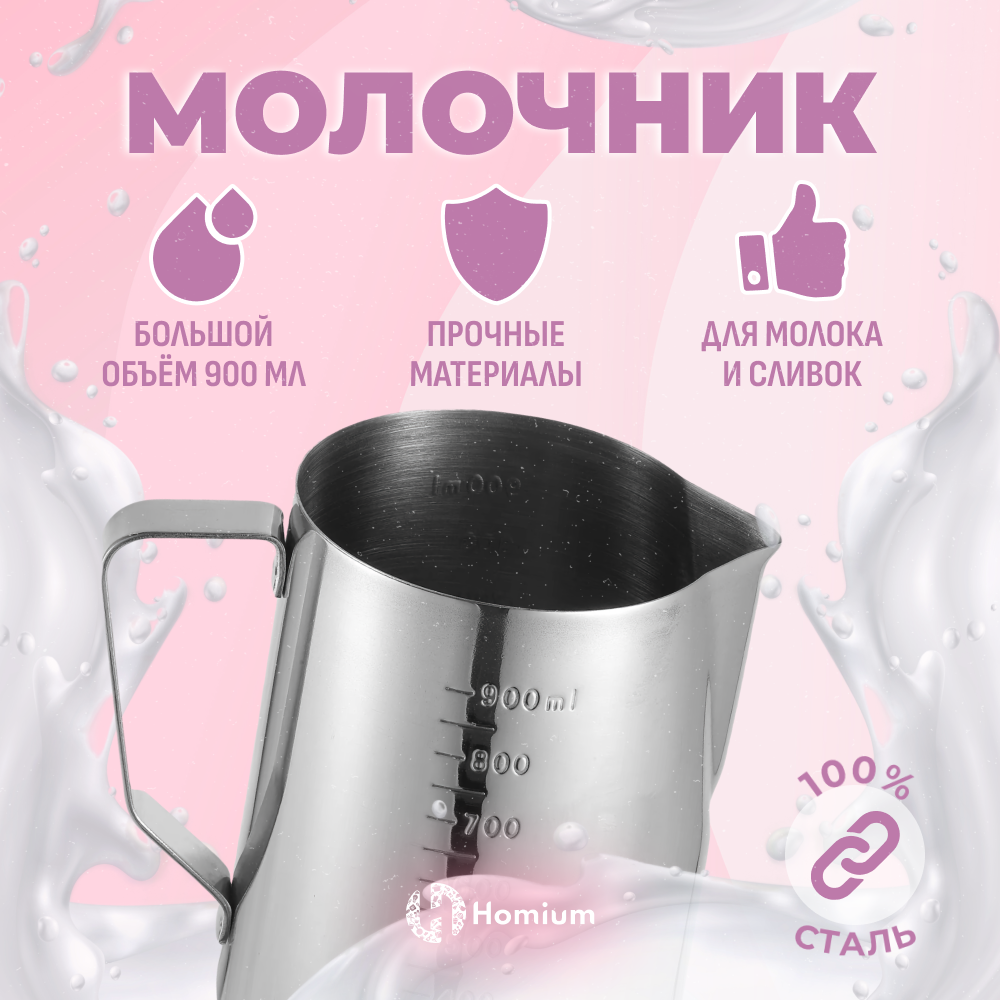 Молочник для кофемашины Homium, питчер мерный для молока из нержавеющей стали, 1000мл, цвет серебро