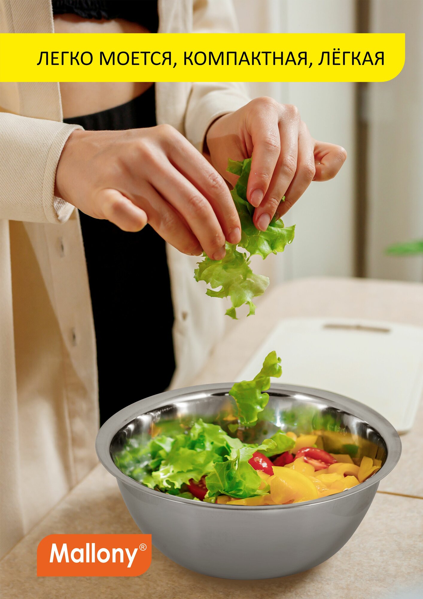 Миска из нержавеющей стали с расширенными краями , 1,7 литра зеркальная полировка, диаметр 23 см интересное: