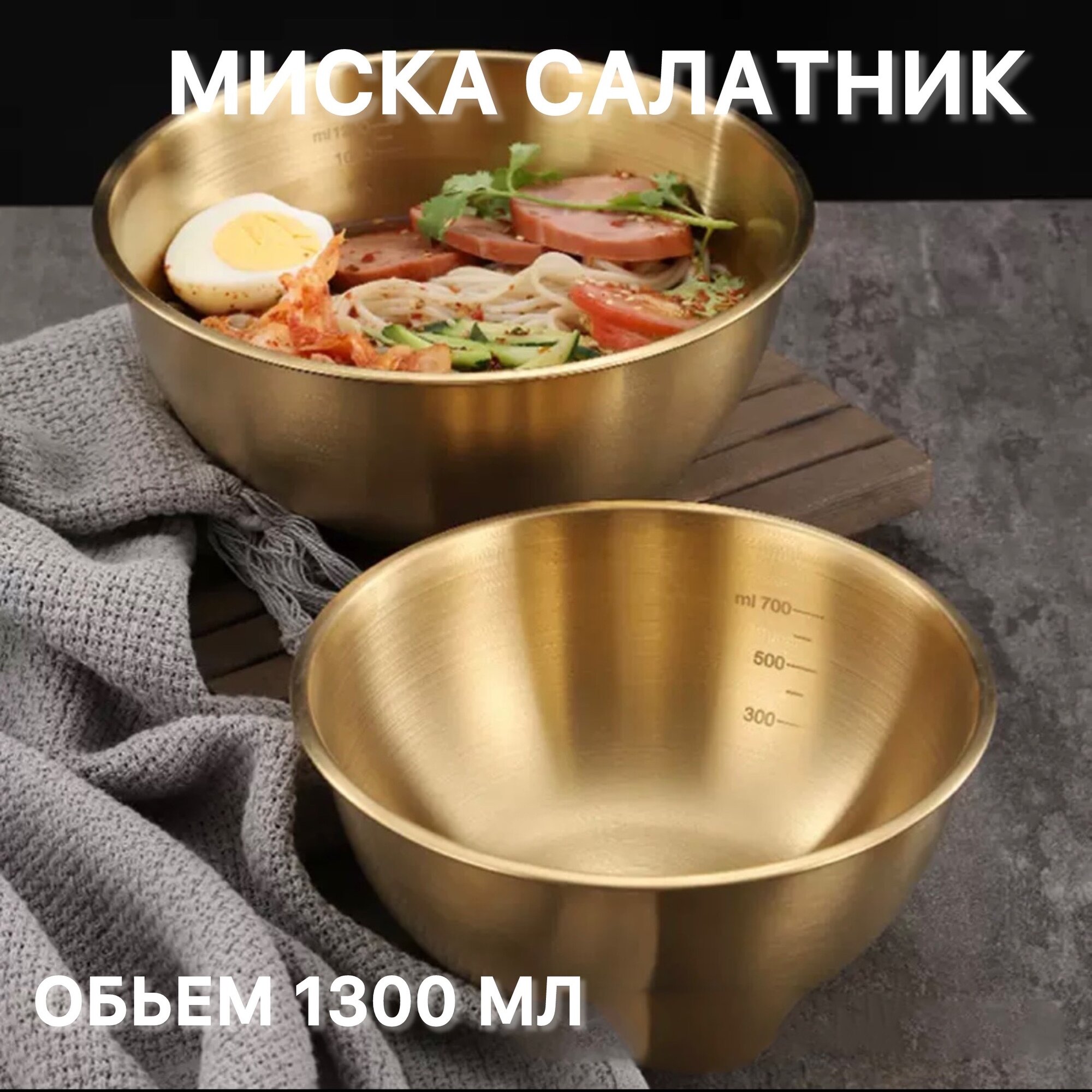 Миска золотая металлическая 1.3 л /салатник из нержавеющей стали золотой 1300 мл интересное: