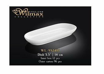 Блюдо фарфоровое овальное Wilmax England, 14×7,5 см, цвет белый