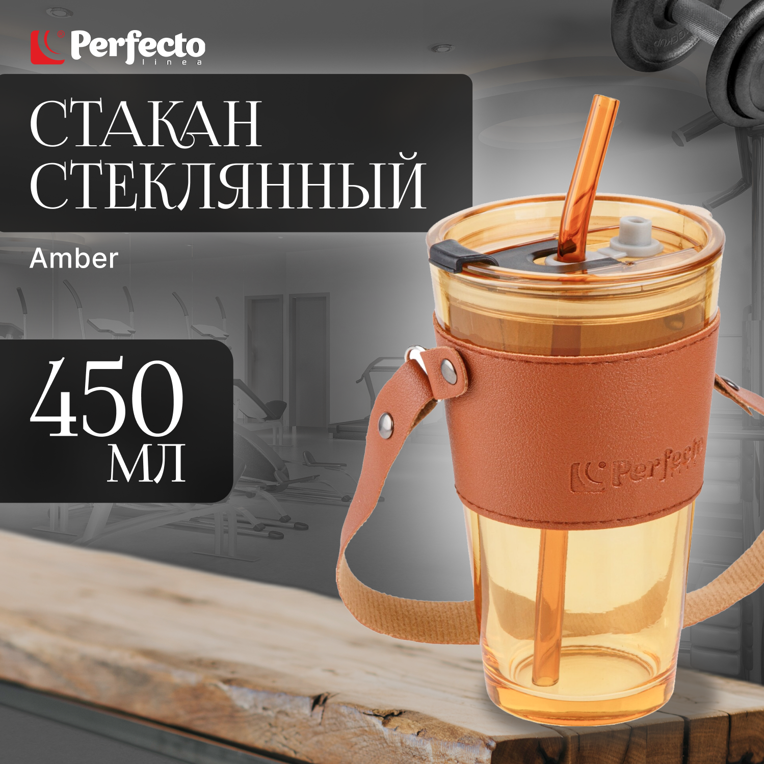 Стакан стеклянный для напитков с трубочкой, кожаным ремешком и кейсом, 450 мл, Amber, PERFECTO LINEA (31-450201)