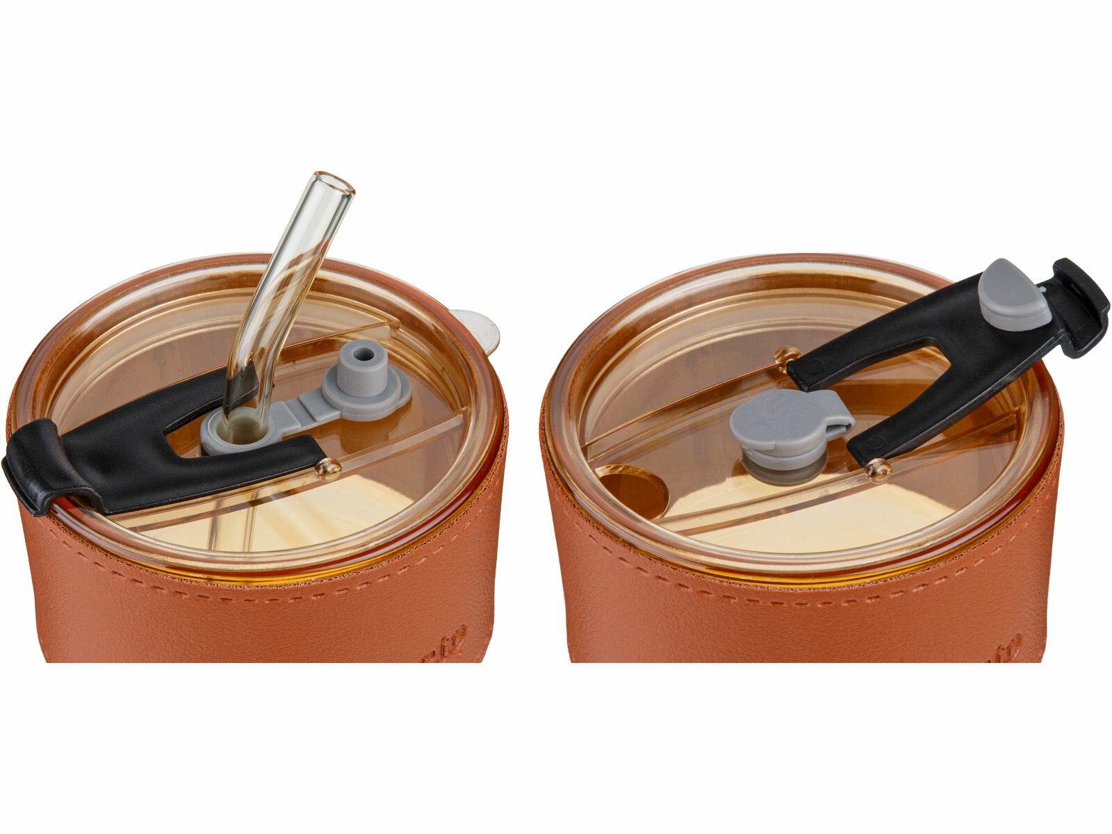 Стакан с трубочкой, кожаным кейсом и ремешком для напитков PERFECTO LINEA Amber 450 мл (31-450201)