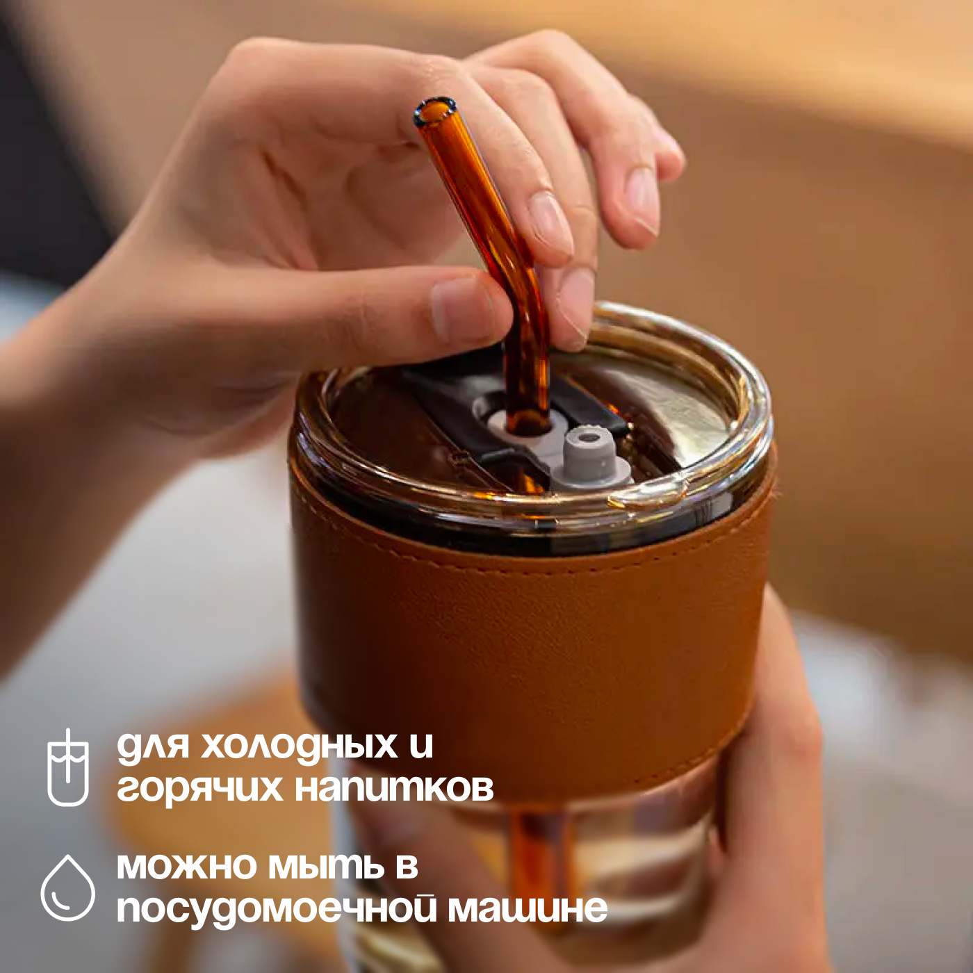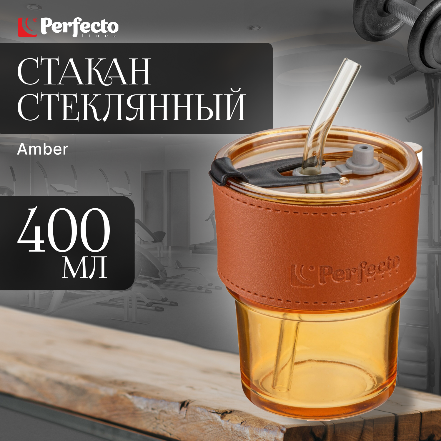 Купить Стакан стеклянный для напитков с трубочкой и кожаным кейсом, 400 мл, Amber, PERFECTO LINEA (31-400201)