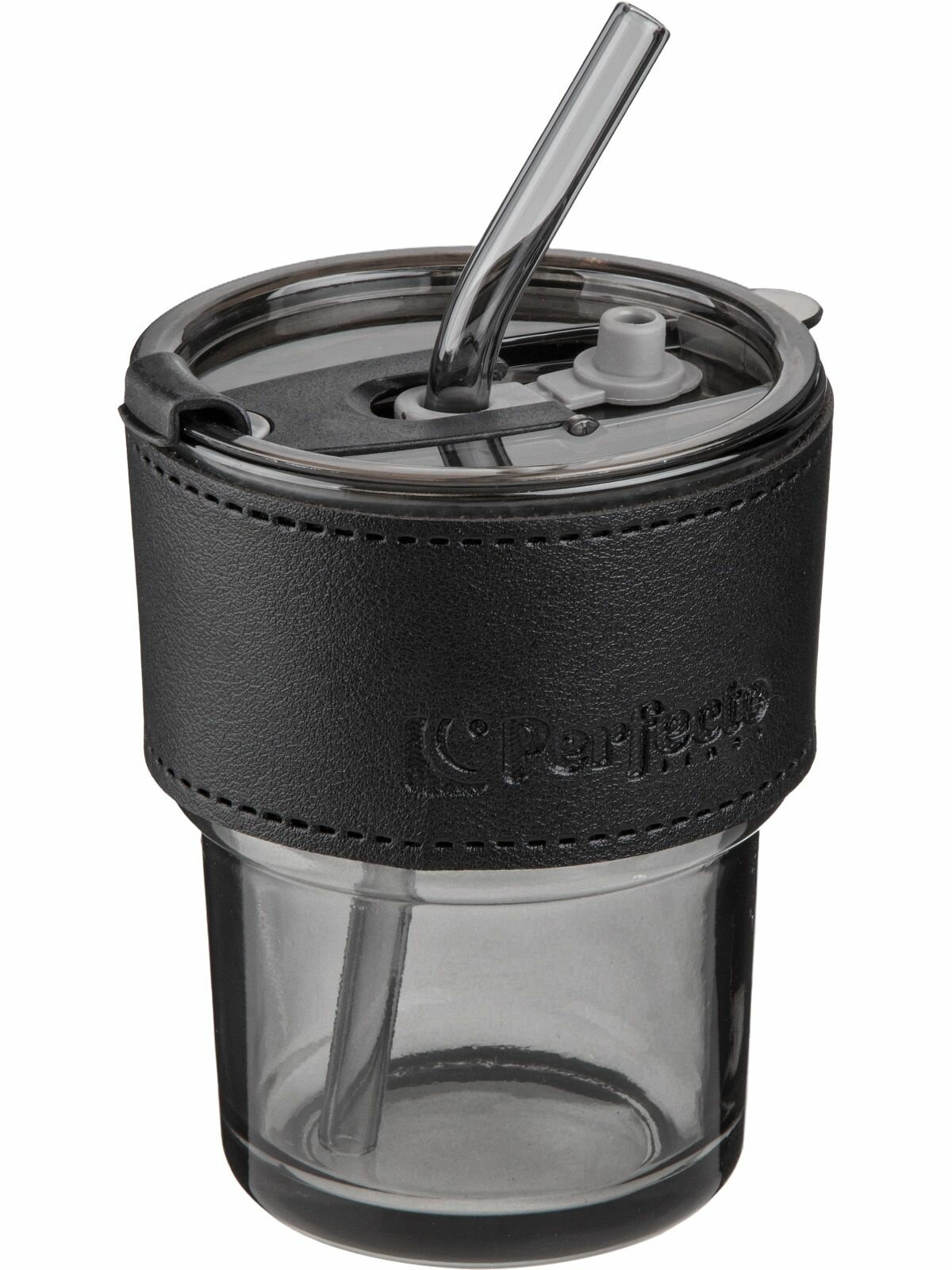 Купить Стакан стеклянный для напитков с трубочкой и кожаным кейсом, 400 мл, Smoke Grey, PERFECTO LINEA