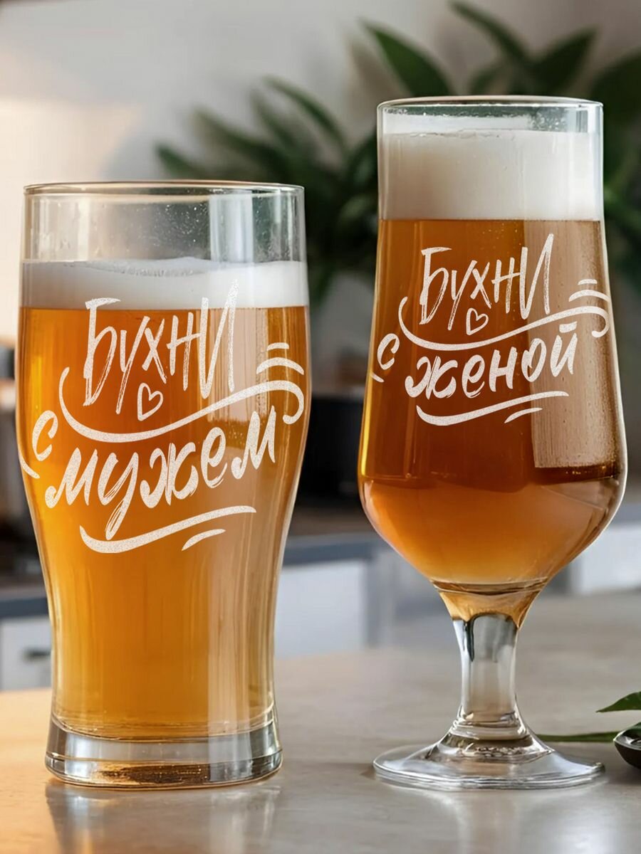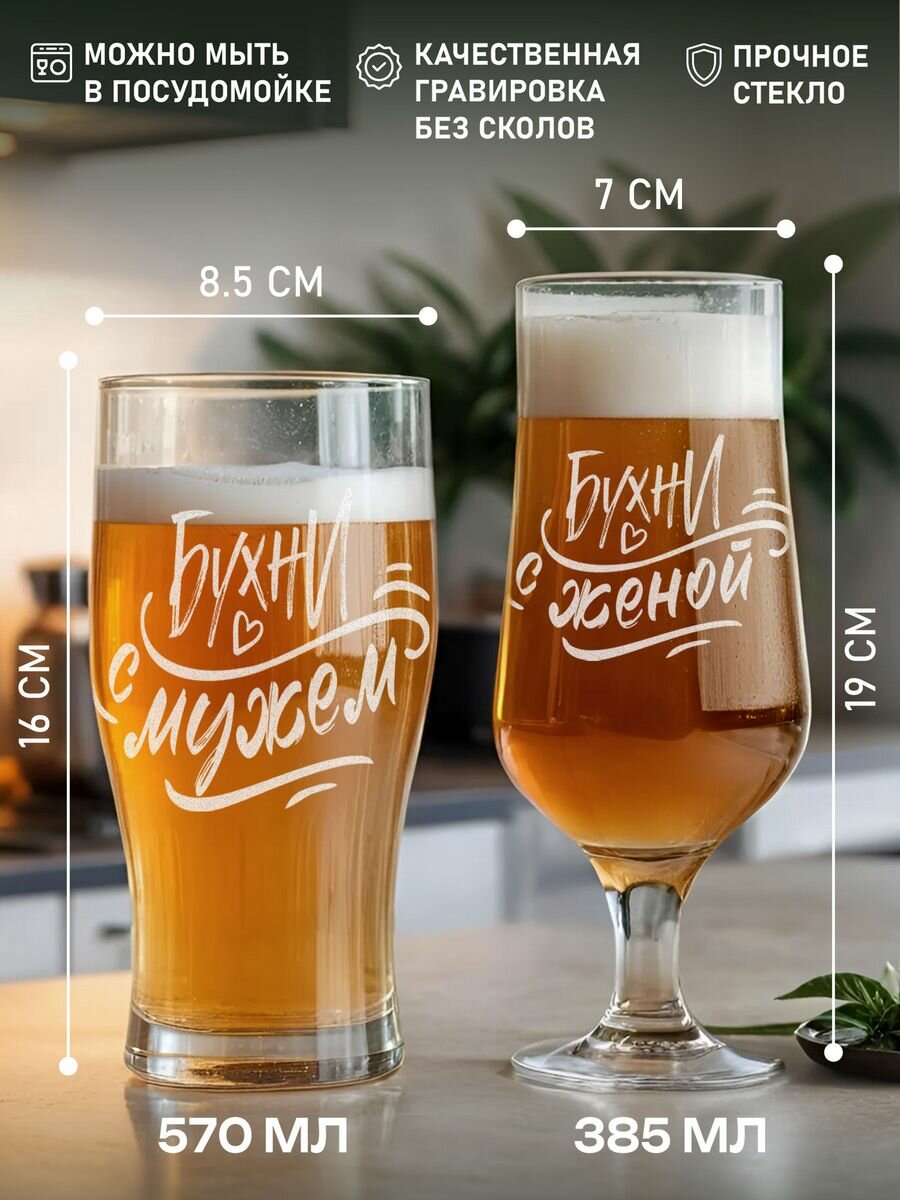 Набор пивных бокалов Бухни с мужем и женой интересное: