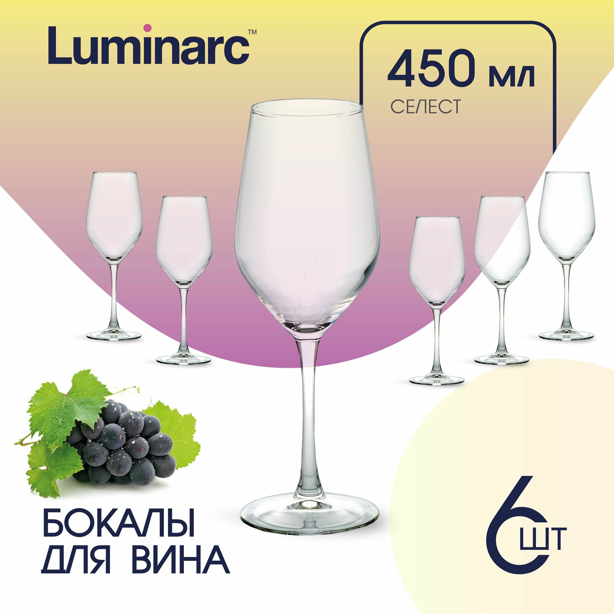 Набор стеклянных бокалов для вина и шампанского Luminarc селест 6 штук 450мл интересное: