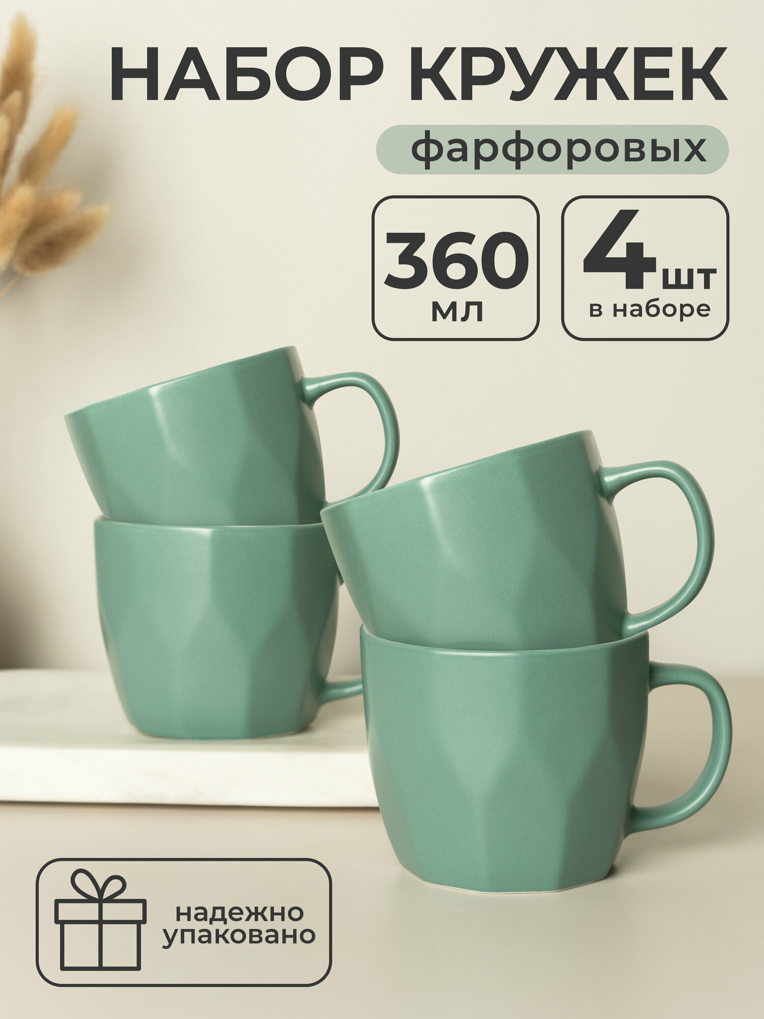 Набор кружек фарфоровых Atmosphere, 360 мл, 4 шт, серо-зеленый интересное: