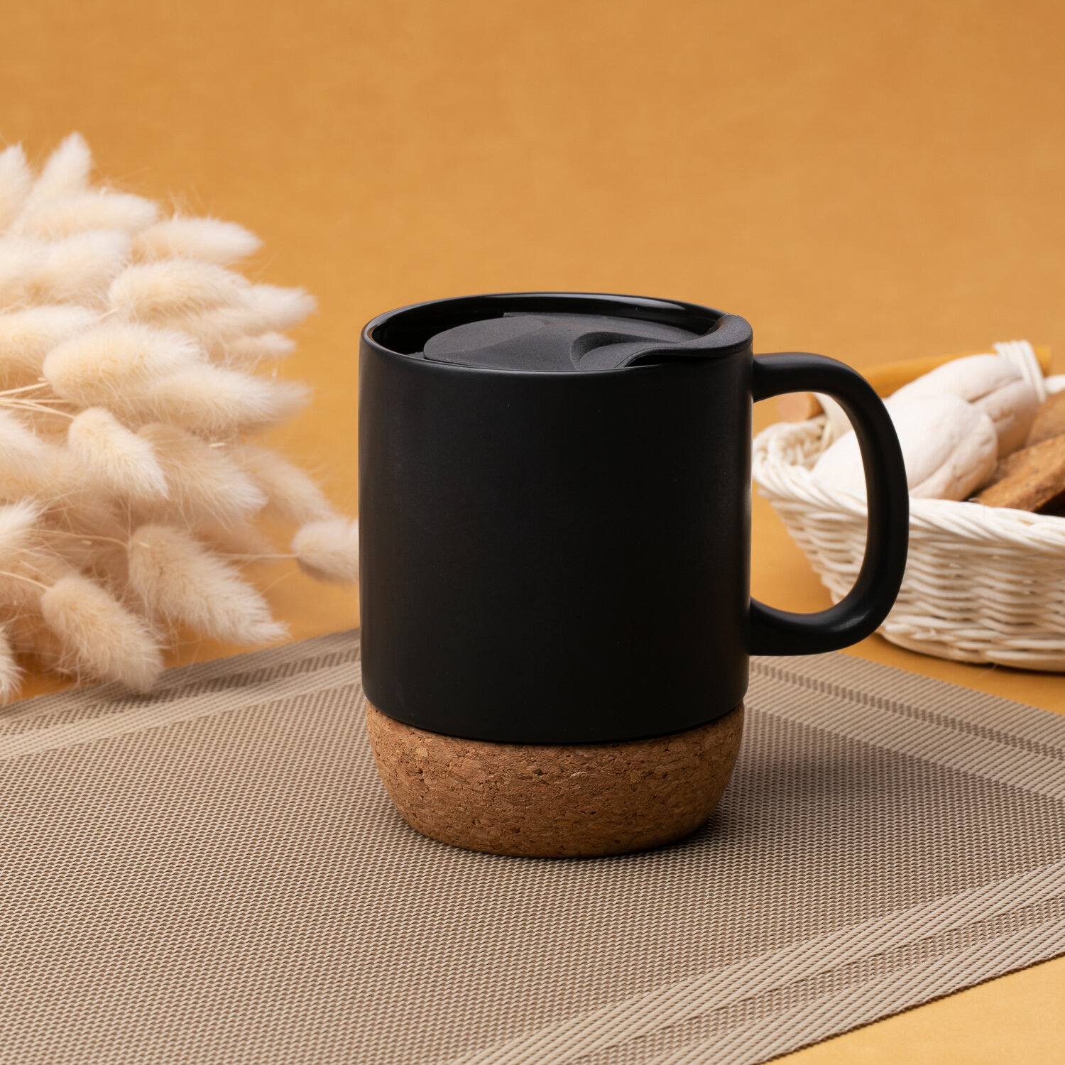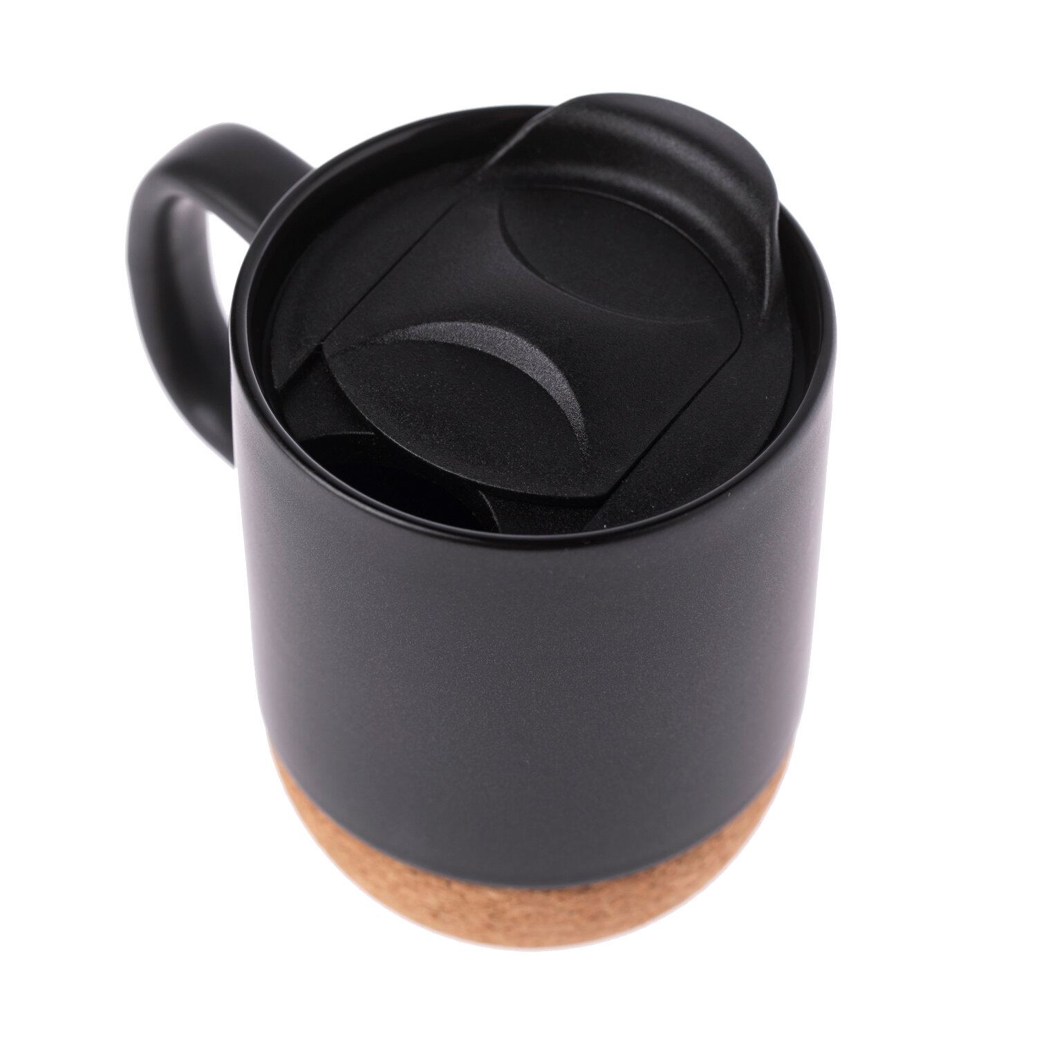 Кружка WALMER Domino 400мл черная с крышкой керамика, пробка