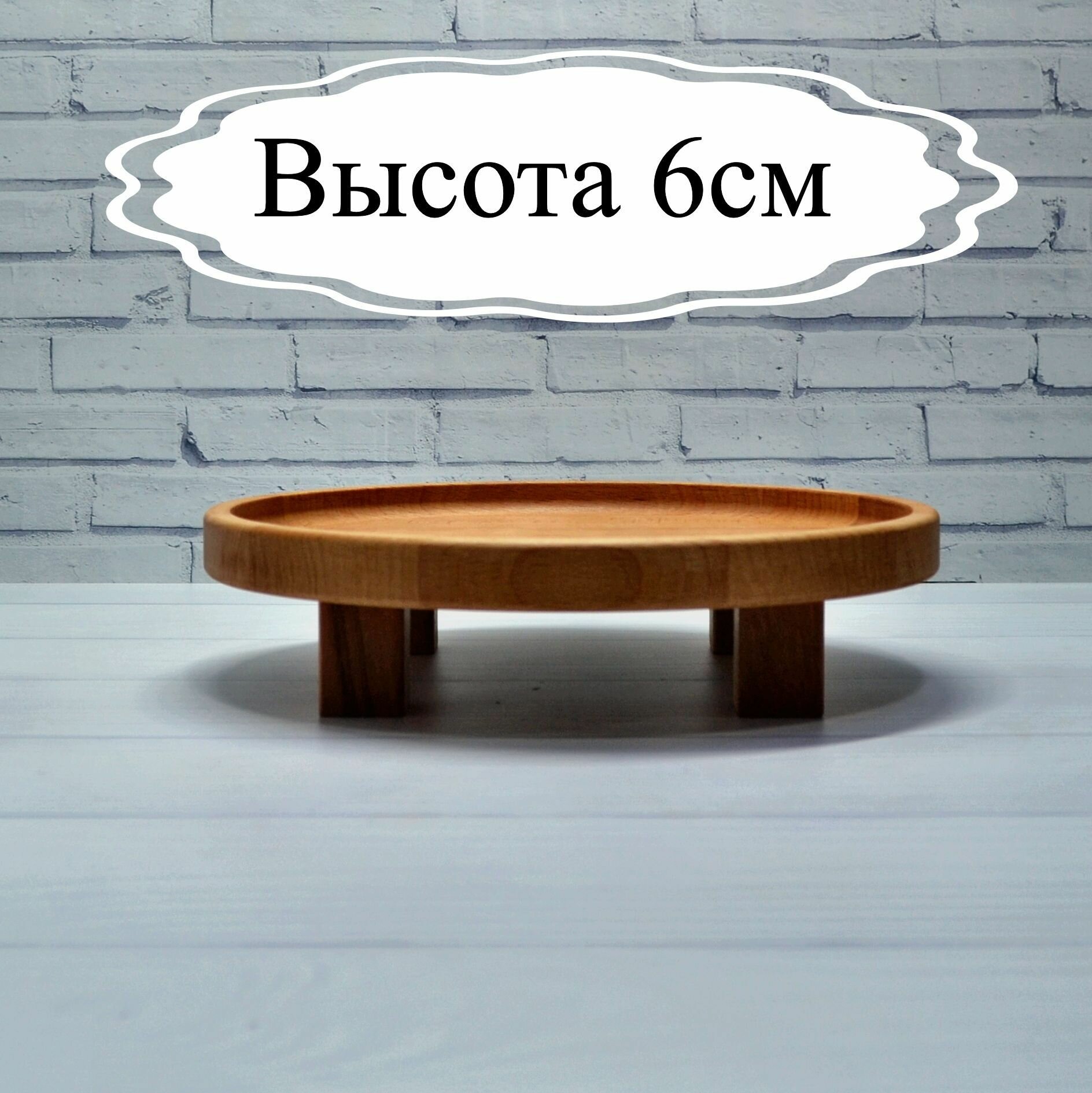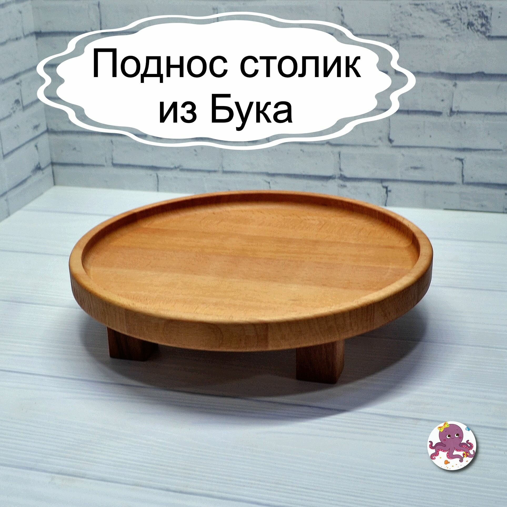 Поднос деревянный на ножках декоративный, поднос круглый из Бука 25 см, Мастерская Осьминожки интересное: