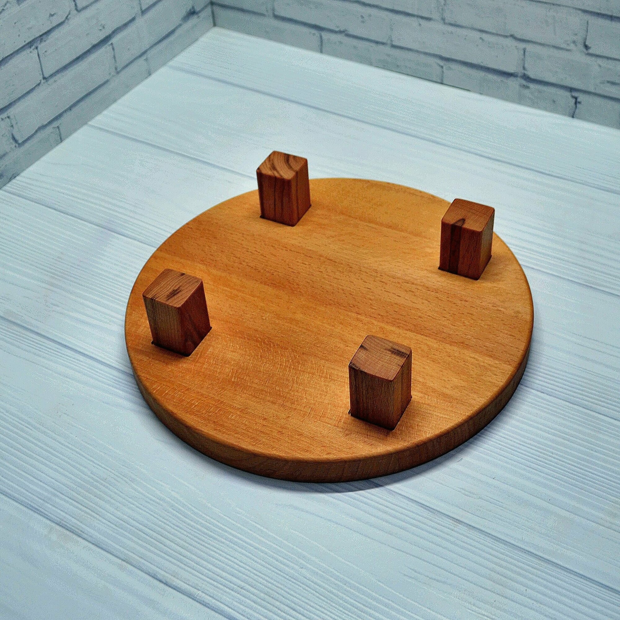 Купить Поднос деревянный на ножках декоративный, поднос круглый из Бука 25 см, Мастерская Осьминожки