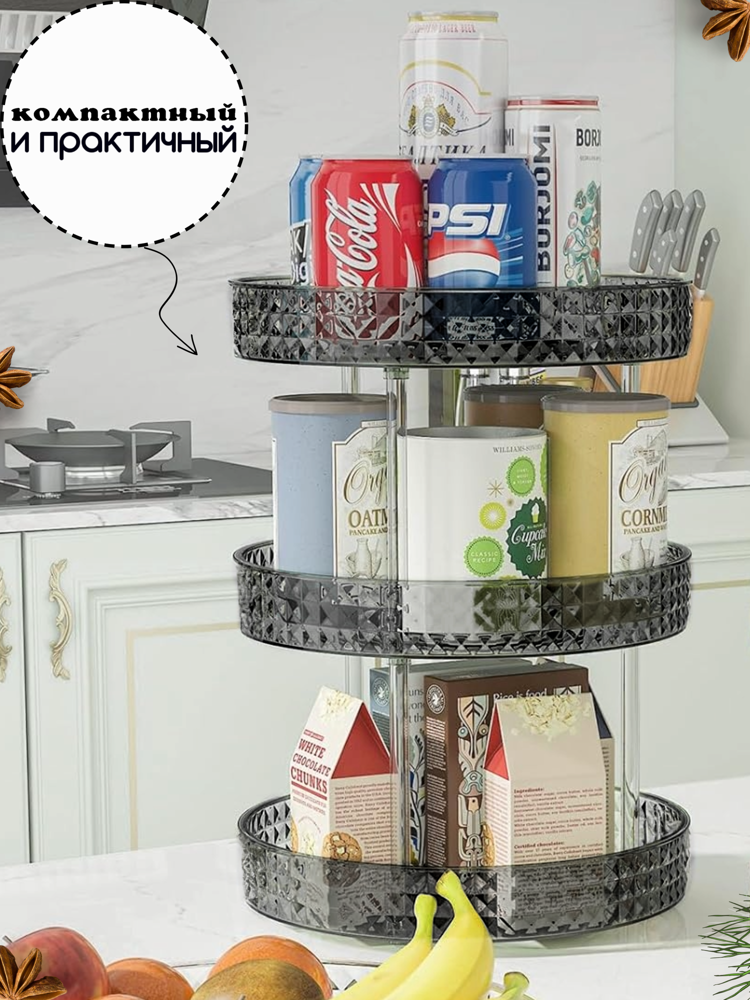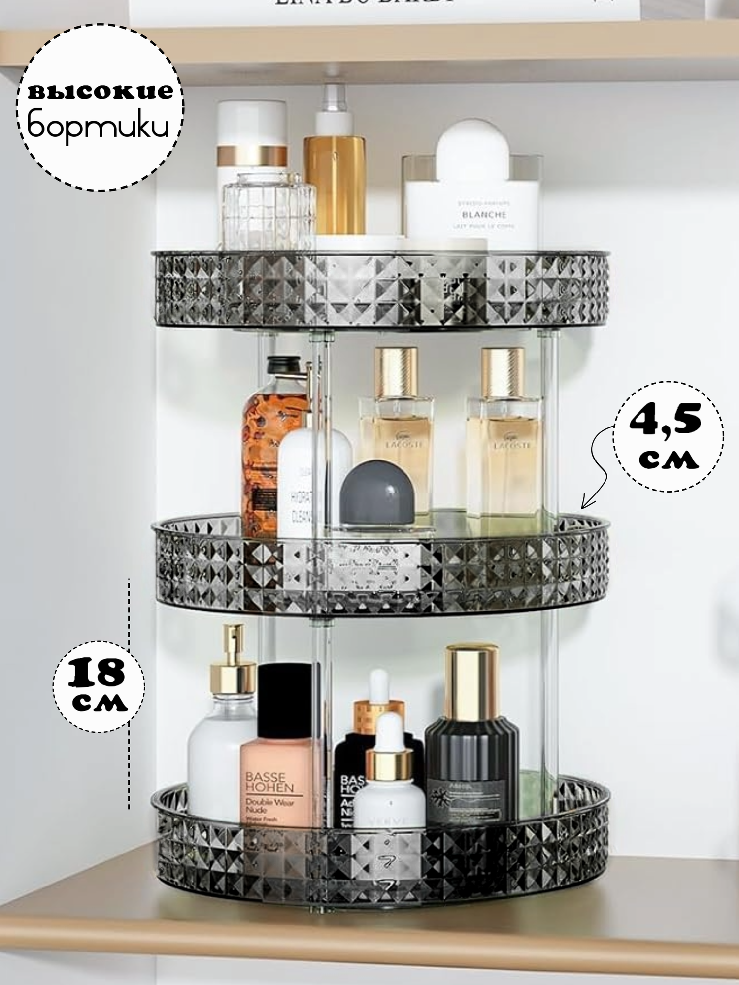 Органайзер трехъярусный вращающийся поднос для косметики 27 см интересное: