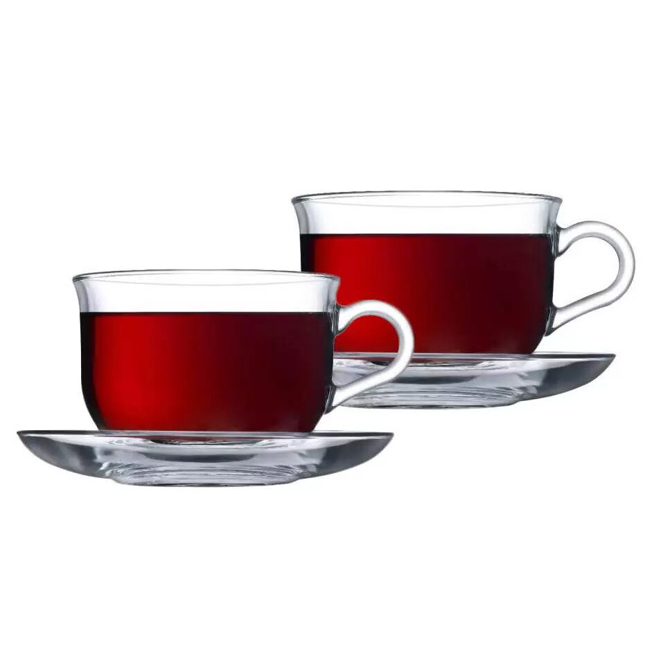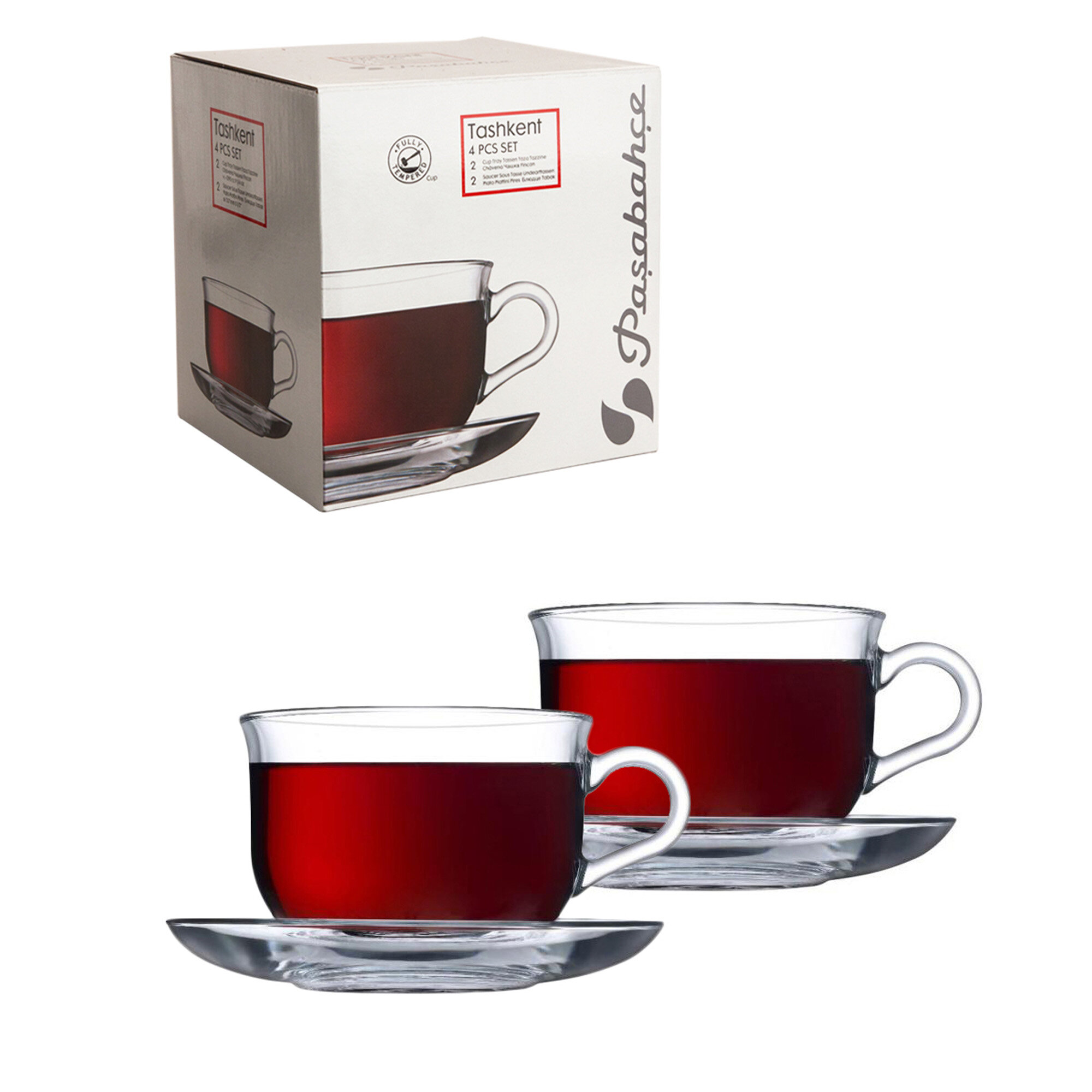 Купить Чашка с блюдцем стеклянные 290 мл, 2 пары, Pasabahce