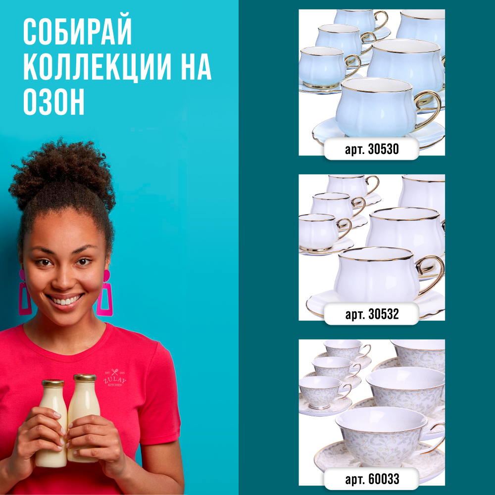 Купить Чайный сервиз на 6 персон фарфор 12 предметов 200 мл LORAINE 30531