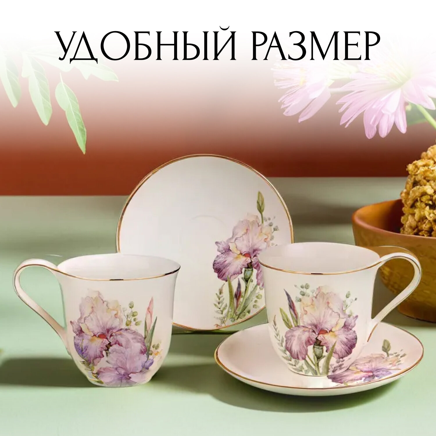 СохранитьЧайный набор "Ирисы" на 2 персоны, 4 предмета, 275 мл. интересное: