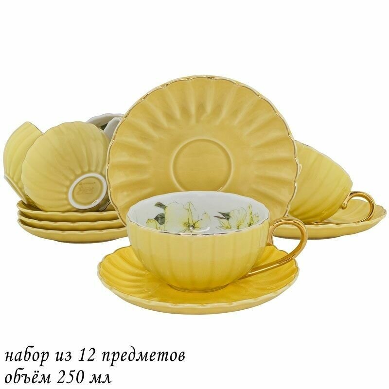 Чайный набор на 6 персон 12 предметов 250мл фарфор интересное: