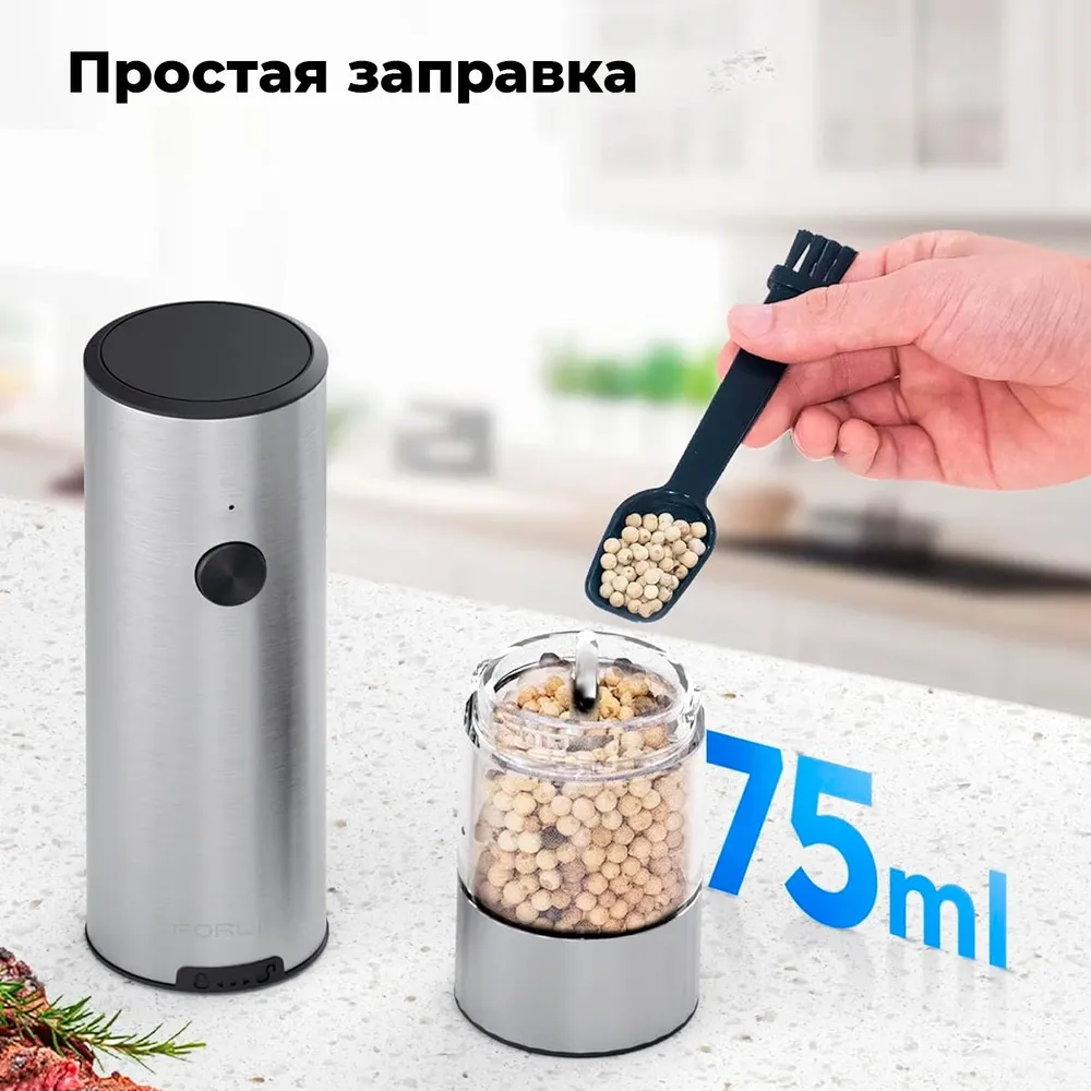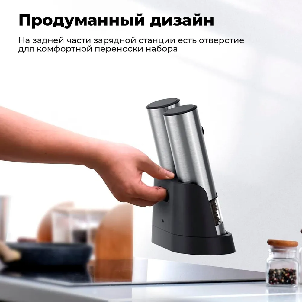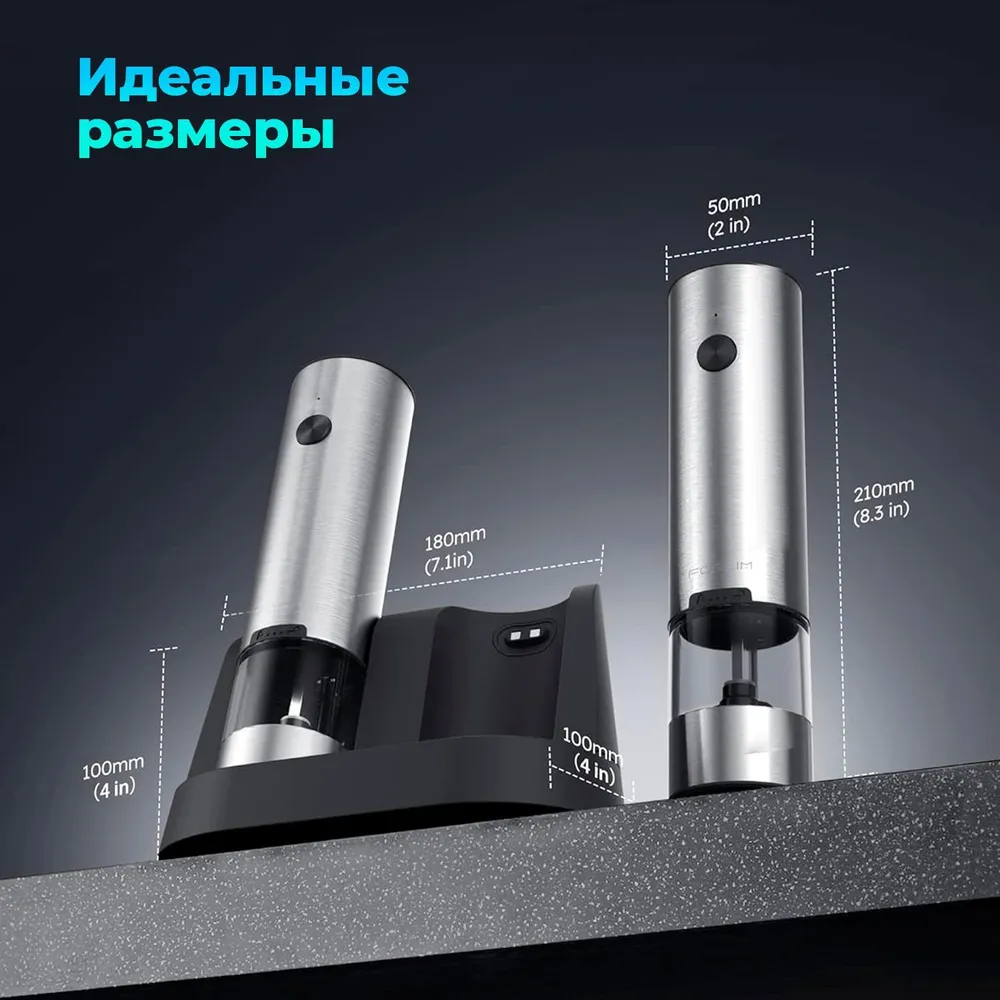 Мельницы для специй аккумуляторные PEPE USB (2 мельницы + подставка для хранения)