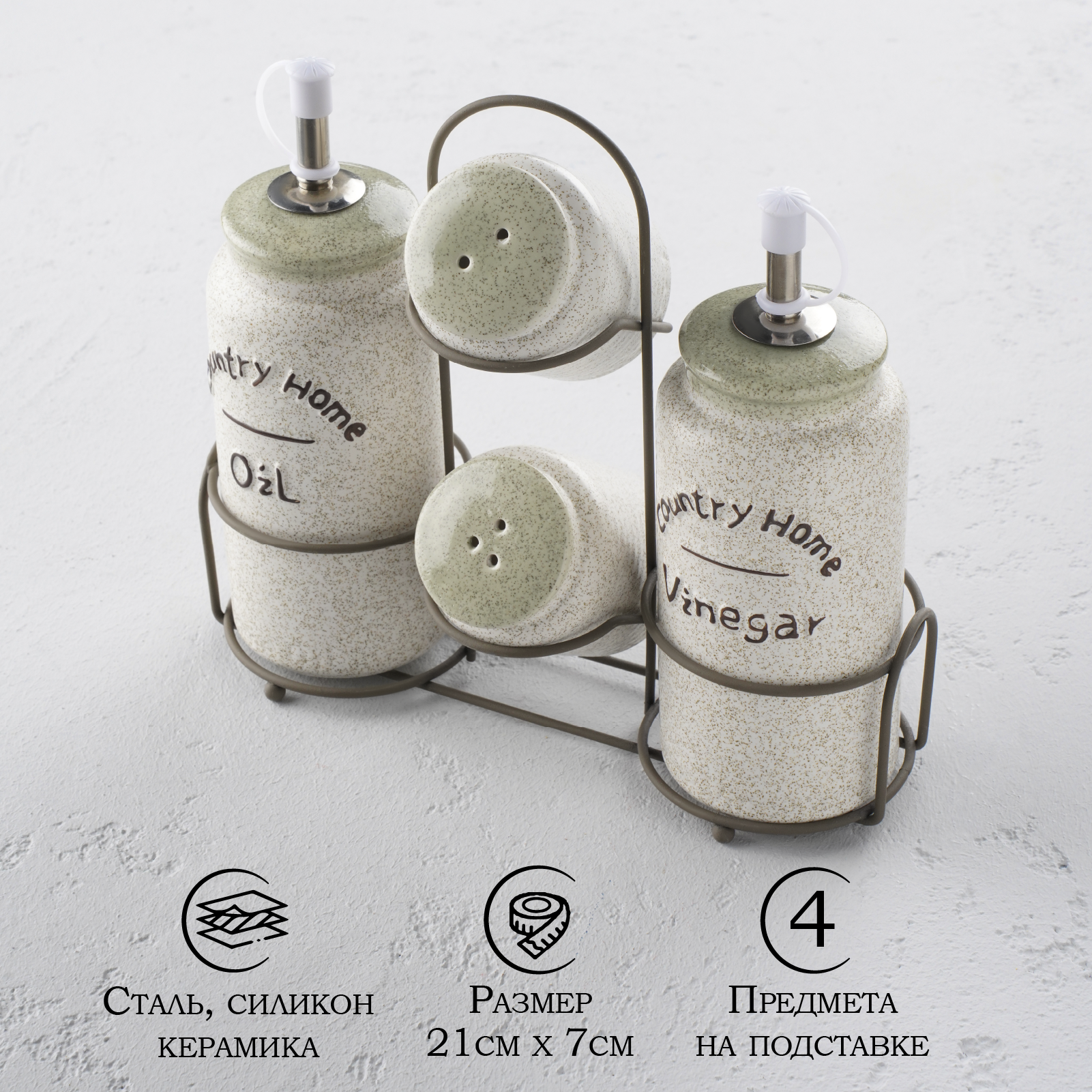 Набор керамический для специй и масел «Домик в деревне», 4 предмета: солонка 115 мл, перечница 115 мл, бутыль для масла 350 мл, бутыль для уксуса 350 мл