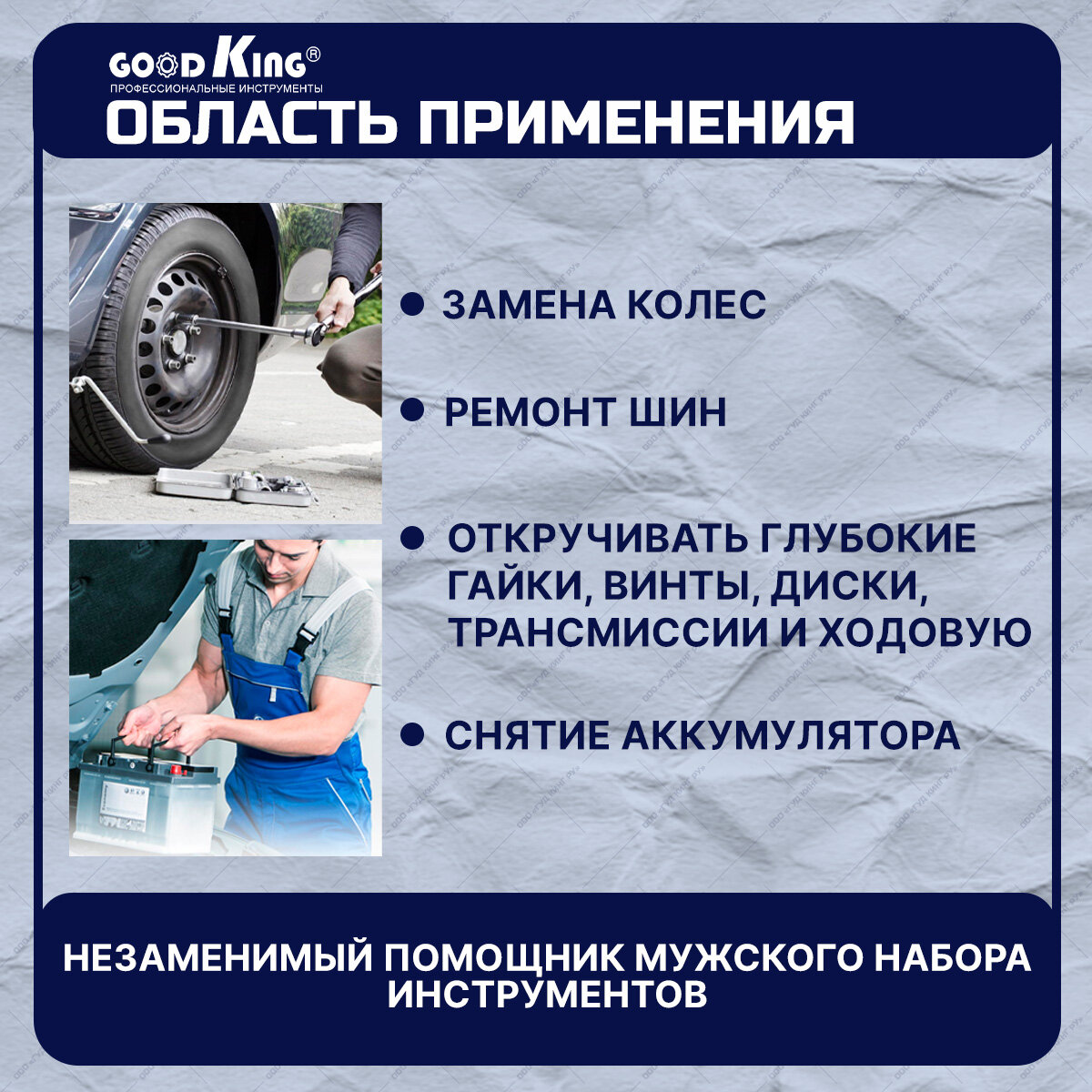 Ключ крест баллонный инерционный GOODKING KB-10005, баллонный ключ 1/2", торцевые головки 17-19 мм, 21-23 мм интересное: