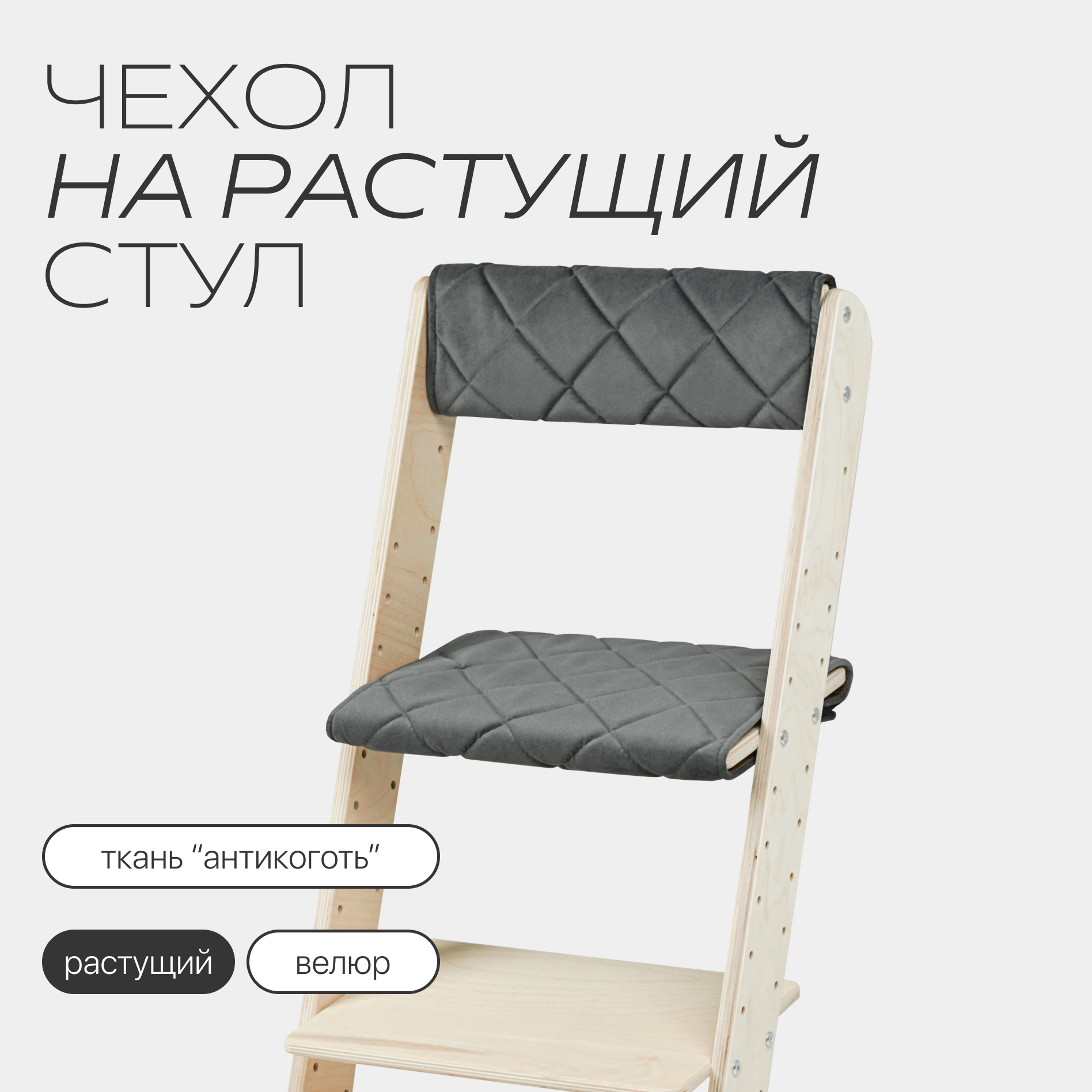 Чехол на растущий стул из велюра, 37х25см, темно-серый интересное:
