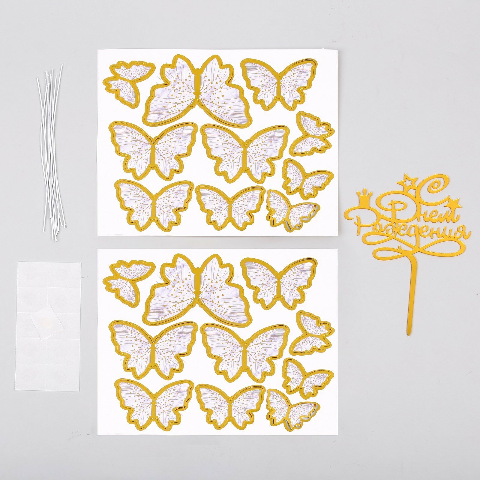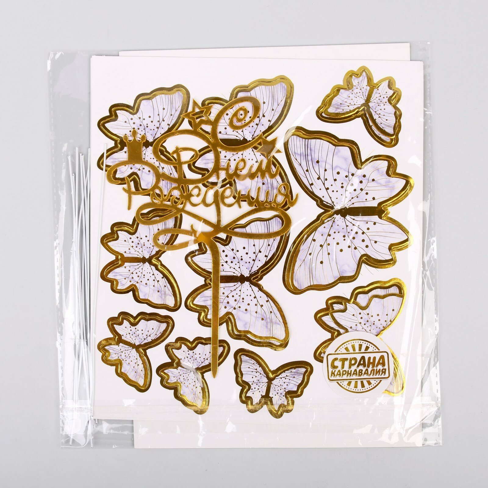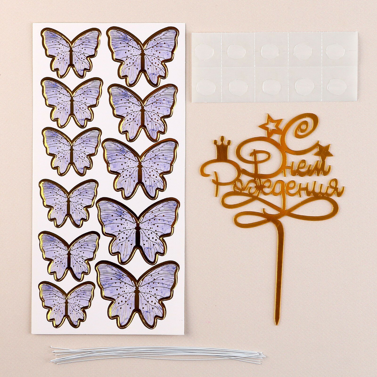 Купить Набор для украшения торта "С Днём Рождения" бабочки, цвет сиреневый 7937517